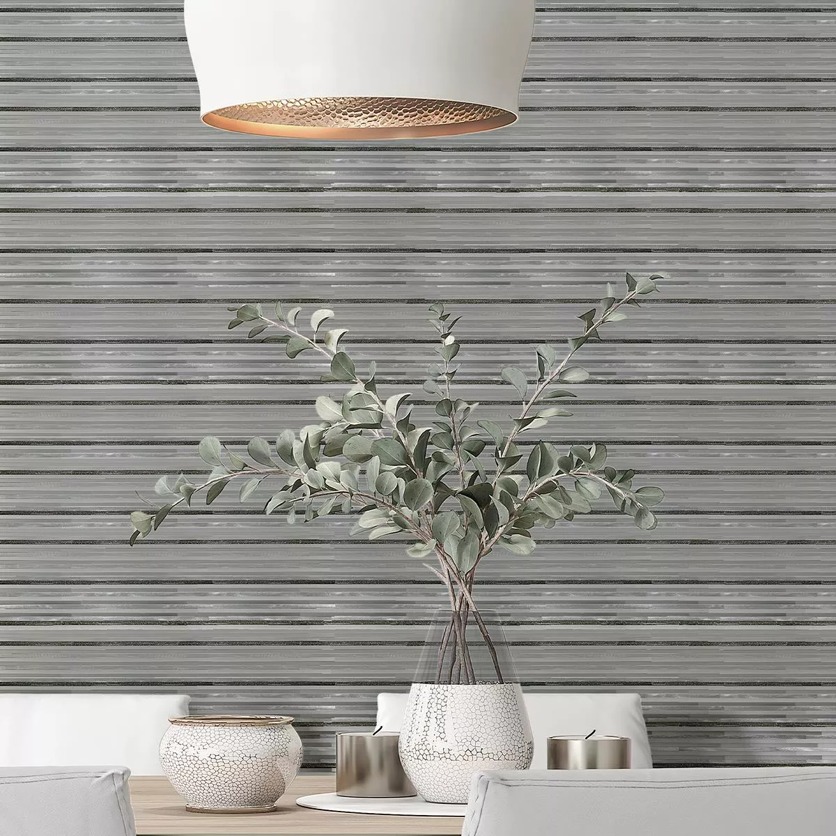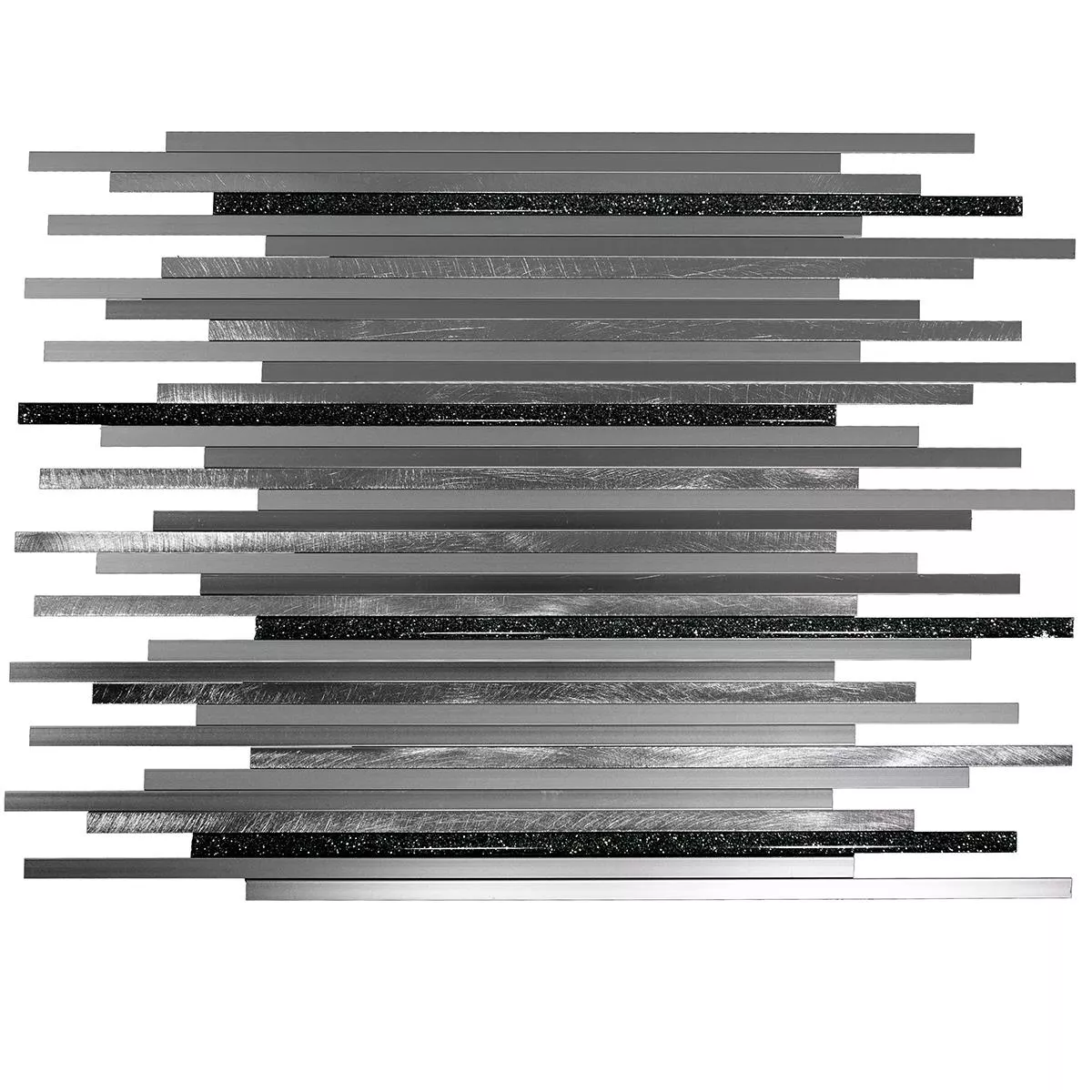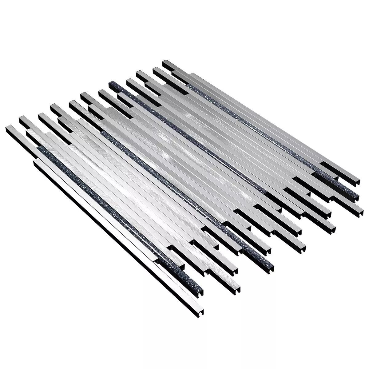 The aluminum metal mosaic tiles Bilbao in stick format give your interior an elegant metal look in black and silver. The brushed, matt surface underlines the contemporary look. With a thickness of 8mm, they offer robustness and longevity.