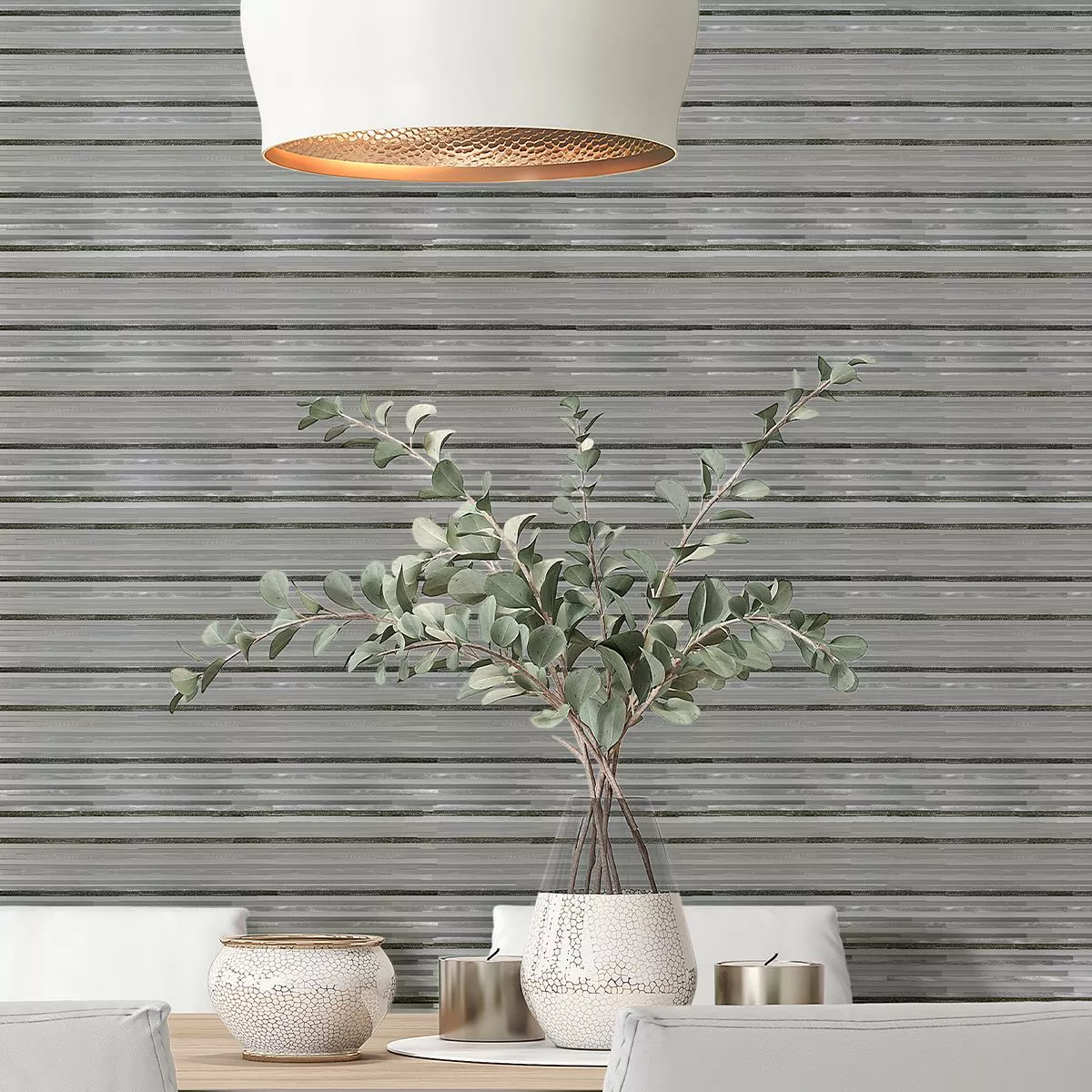 Aluminium Metal Mosaic Tiles Bilbao Stripes Silver