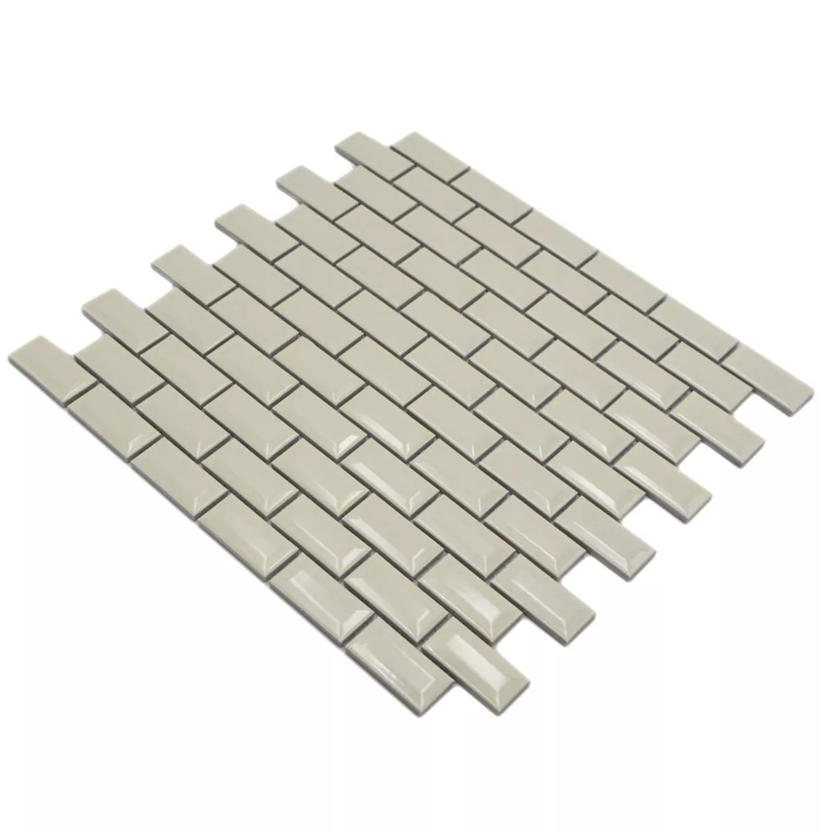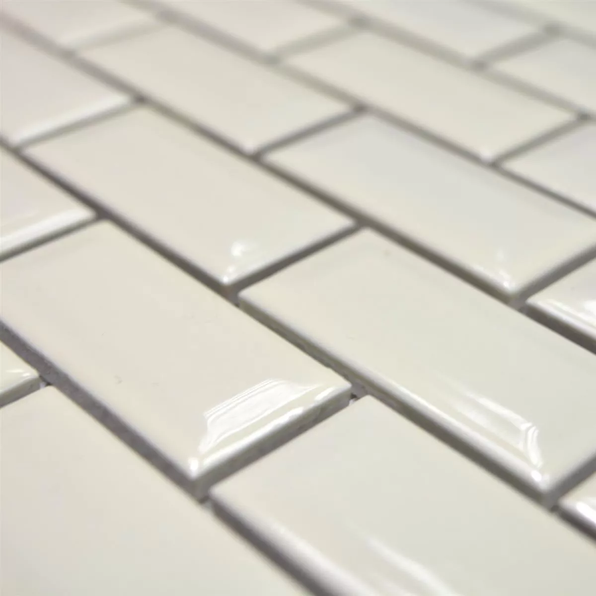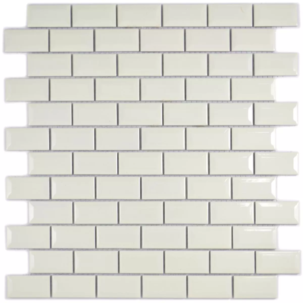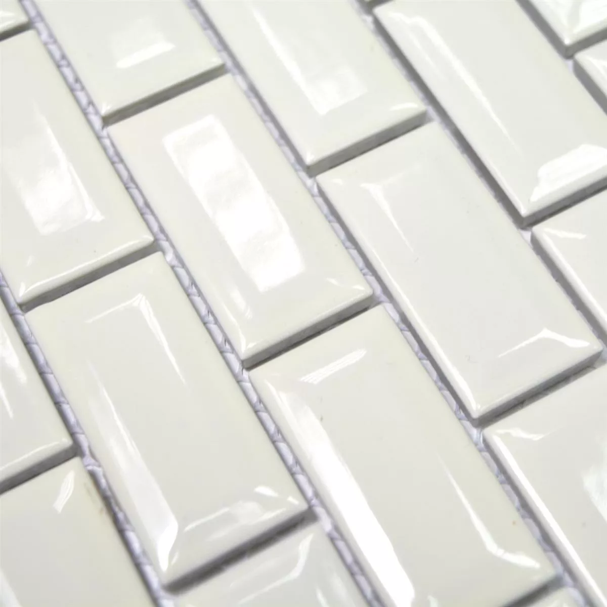 Ceramic Metro Mosaic Tiles Baltimore Facet Ivory Glossy