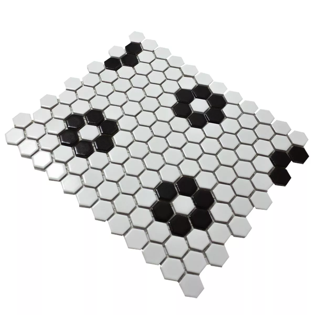 Ceramic Mosaic Tile Hexagon Osaka Black White