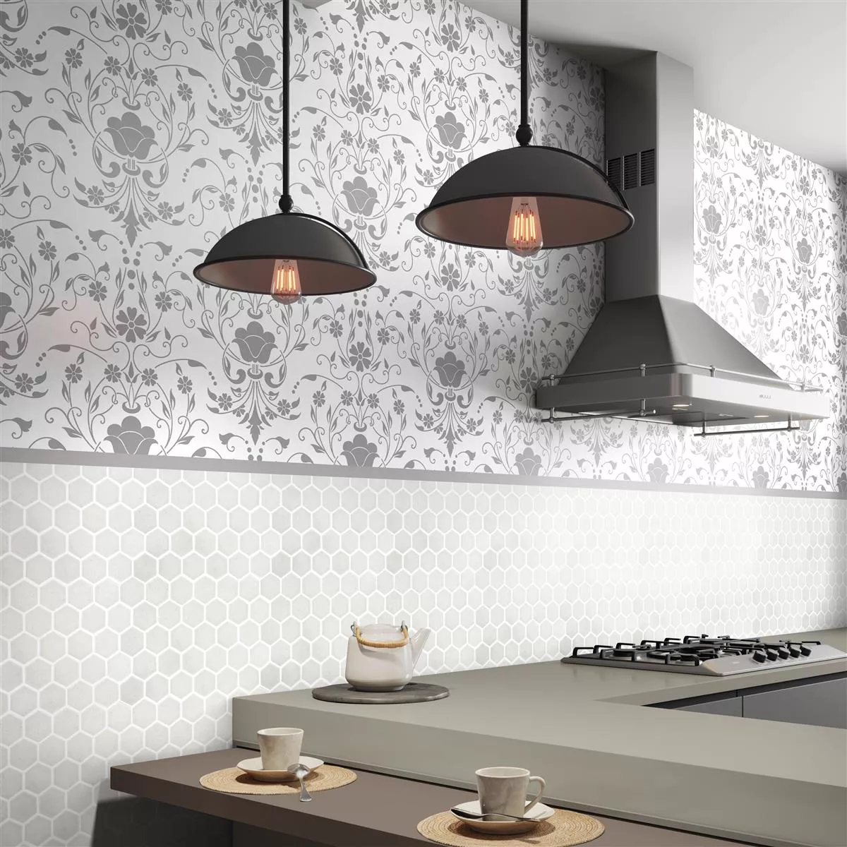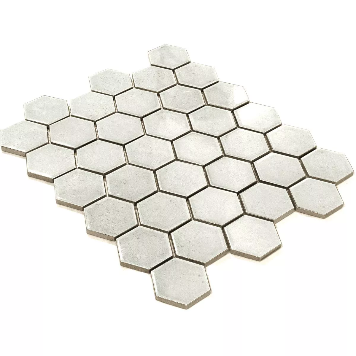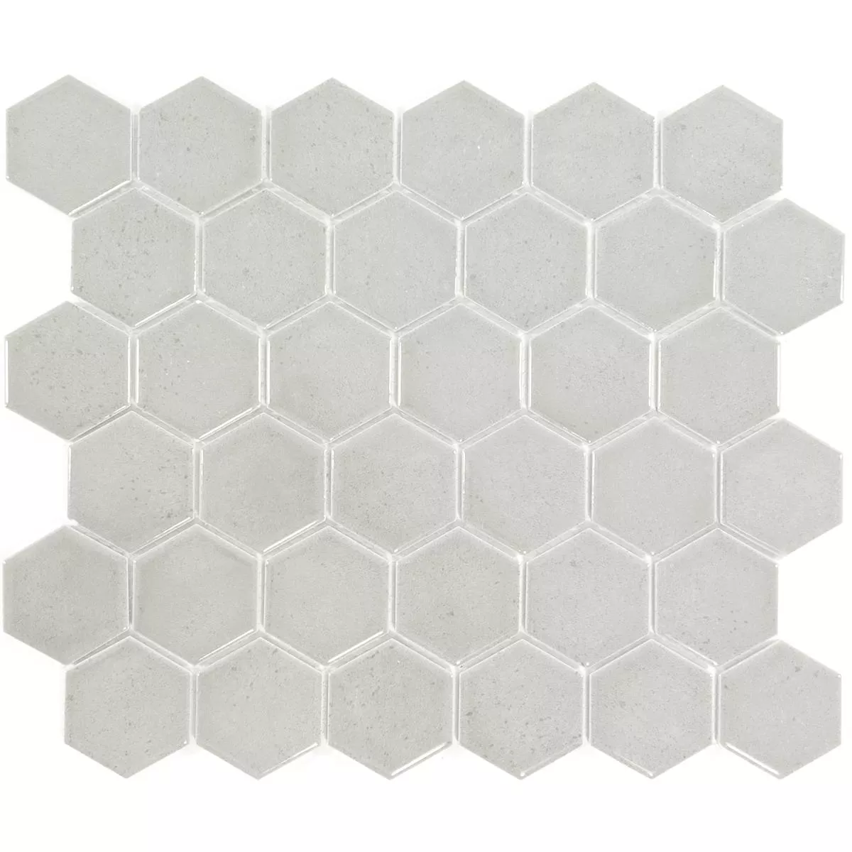 The ceramic mosaic tiles "Eldertown Hexagon White" present timeless elegance and modern design. With a glossy surface and hexagonal format (32x28cm), these mosaic and wall tiles create a stylish atmosphere in your kitchen, shower and living room. A mat (0.092m²) weighs only 1.25 kg and consists of stones measuring 50x50.8mm. The joint width of 3mm creates a harmonious overall appearance.