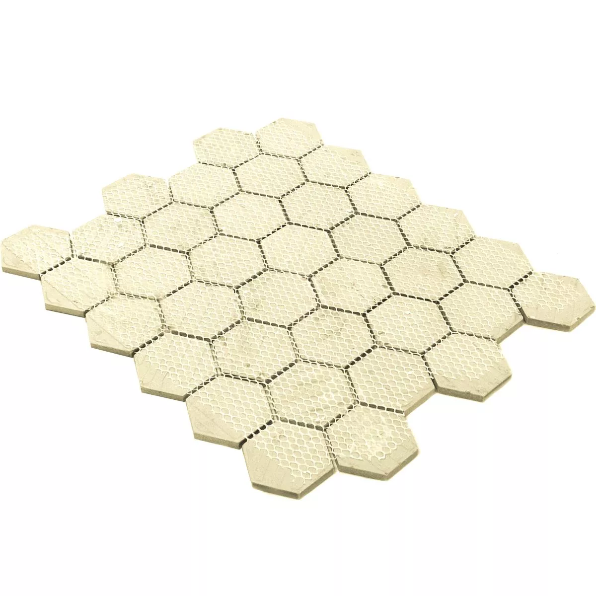 The ceramic mosaic tiles "Eldertown Hexagon Dark Green" combine timeless design with modern flair. With a glossy surface and hexagonal format (32x28cm), these mosaic and wall tiles offer an elegant solution for the kitchen, shower and living room. A mat (0.092m²) weighs only 1.25 kg and is easy to handle thanks to its thickness of 7mm. The joint width of 3mm creates a harmonious appearance.