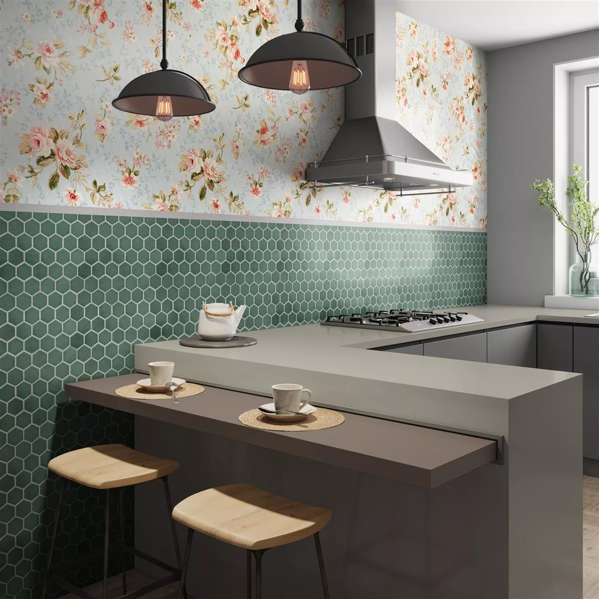 Ceramic Mosaic Tiles Eldertown Hexagon Dark Green