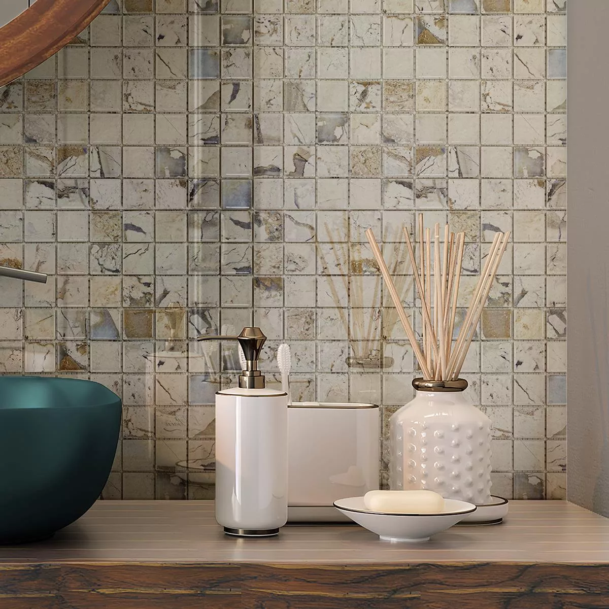 Ceramic Mosaic Tiles Elysium Marble Optic Beige 23