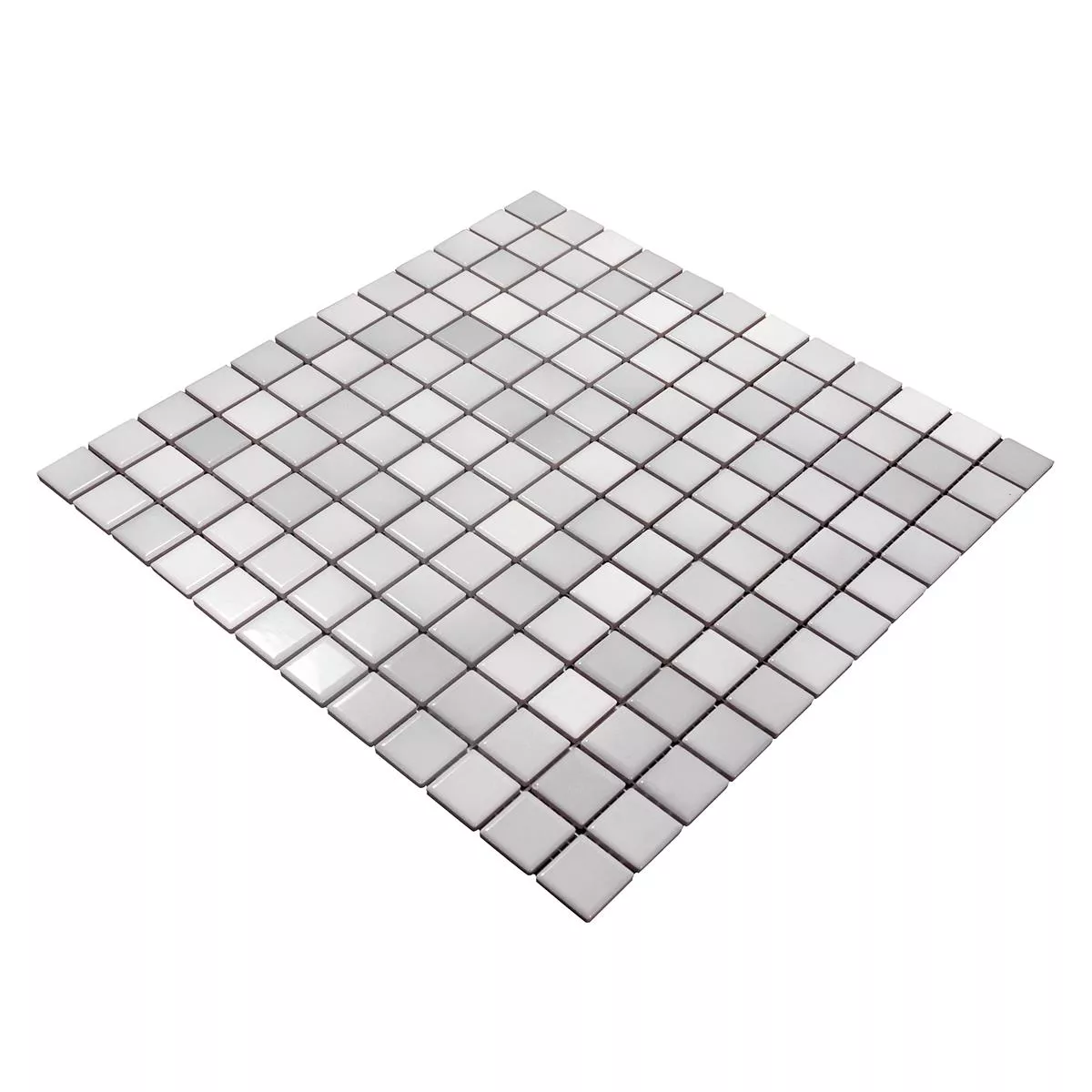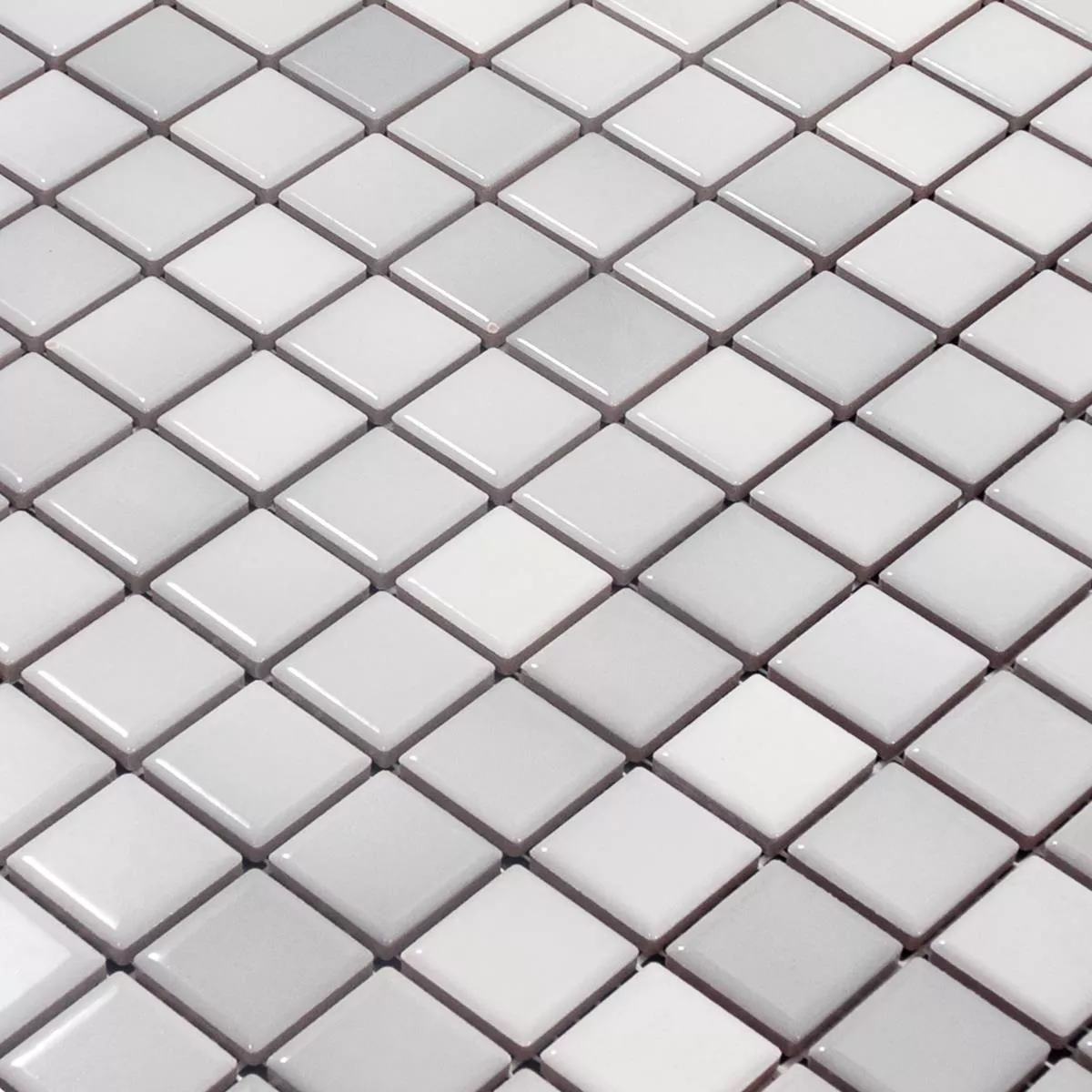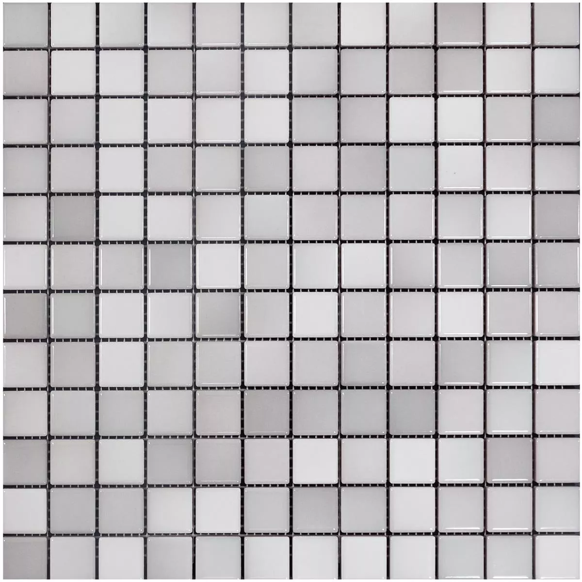 The Galleria ceramic mosaic tile in gray mix offers an elegant and versatile solution for your design ideas with its modern metallic look and matte surface. The tile comes in practical mats measuring 29.7 x 29.7 cm, which are glued to a net ready for installation. With a stone size of 23 x 23 mm and a thickness of 6.5 mm, it can be laid precisely on both walls and floors.