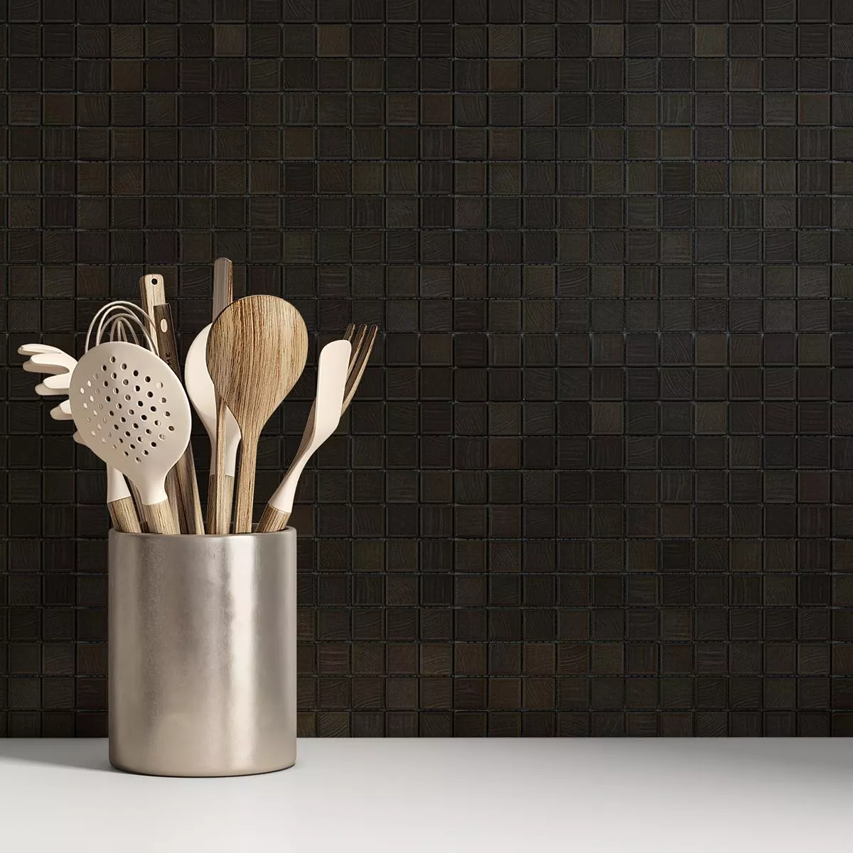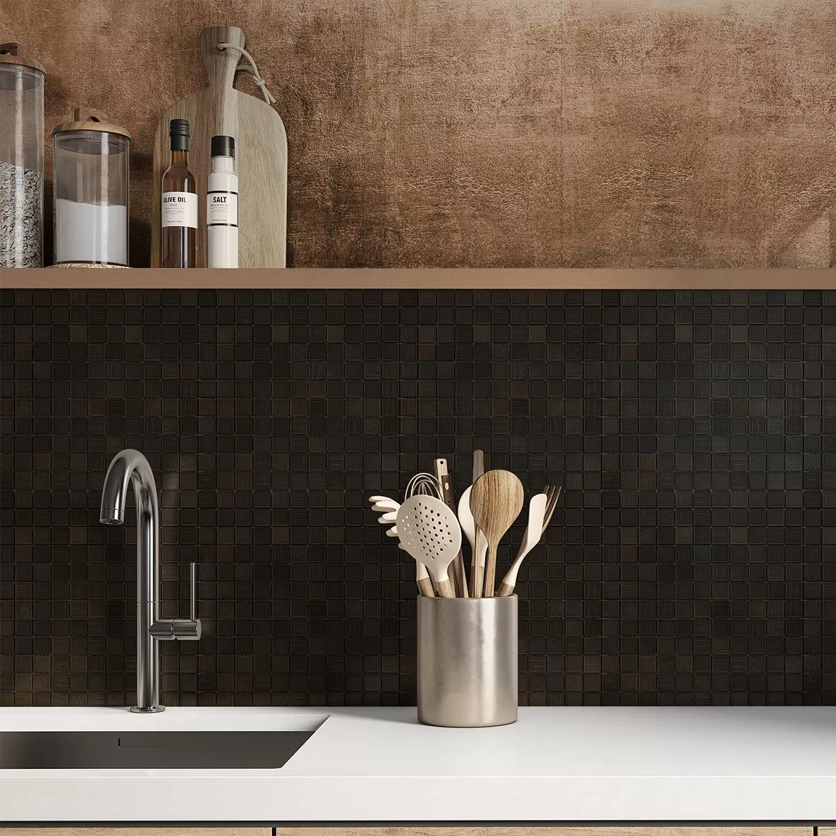The Luminara ceramic mosaic tile in elegant anthracite combines modern design with the highest functionality. The matt wood-look surface gives any environment a timeless and stylish aesthetic, while the stone size of 23 x 23 mm is arranged on a mat of 29.7 x 29.7 cm, which has been glued to a mesh ready for installation. This makes installation effortless and precise.