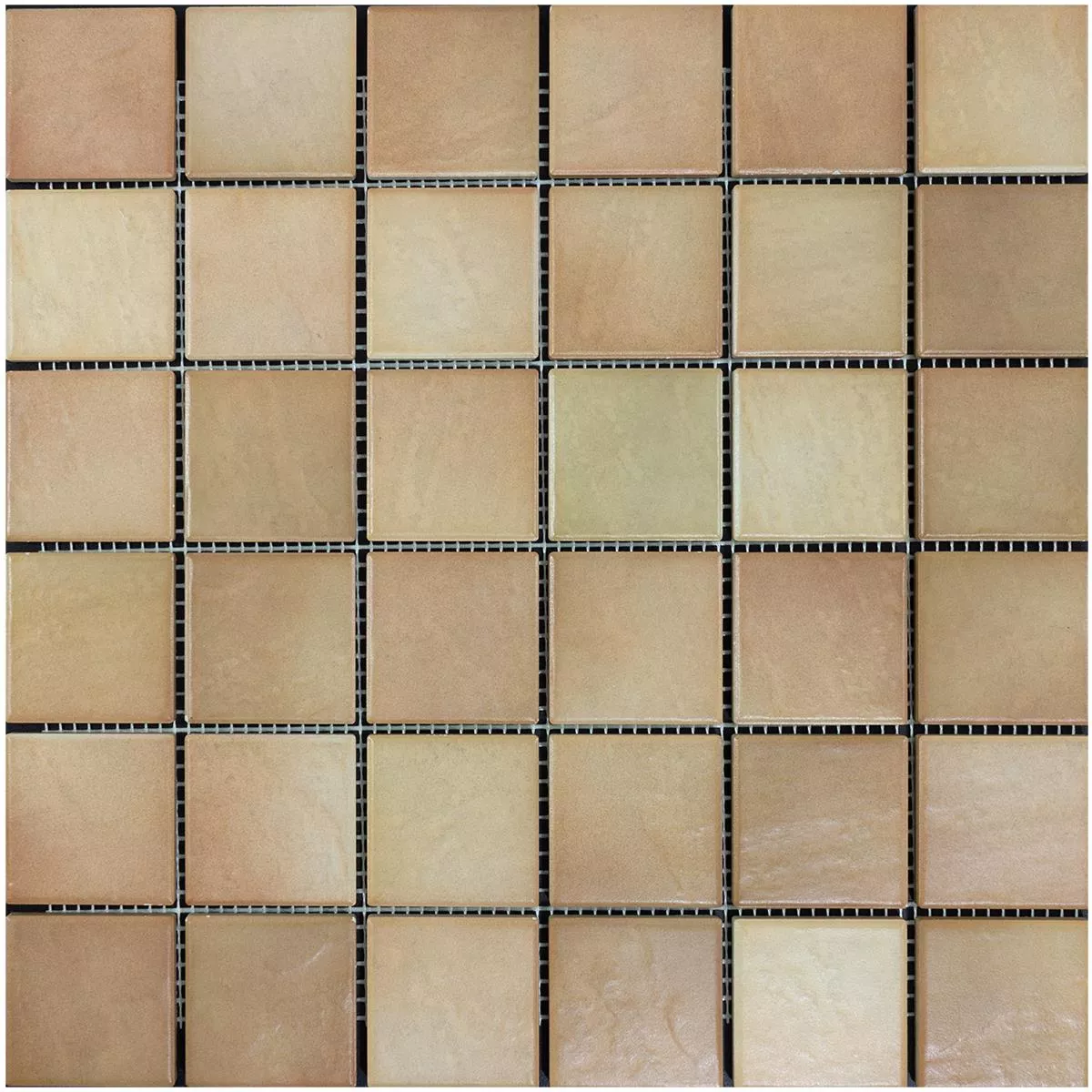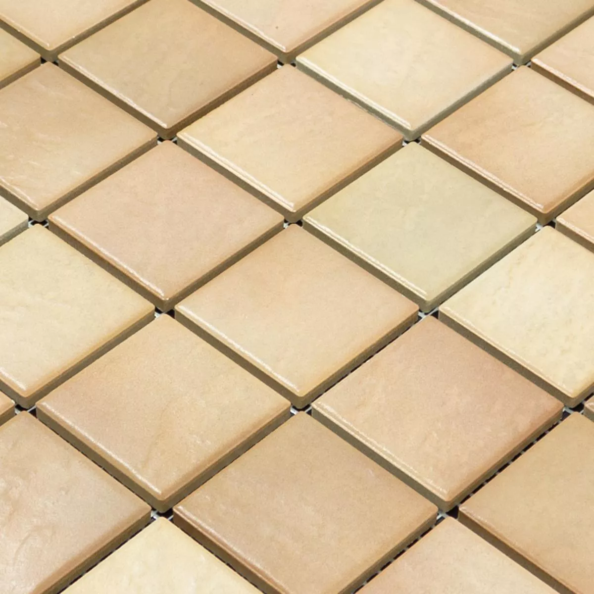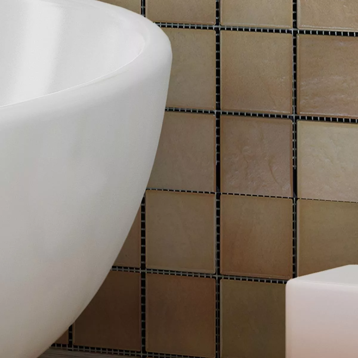 The Palazzia ceramic mosaic tile in warm cotto brings Mediterranean charm and timeless elegance to any room. With its matt surface and authentic stone look, it gives walls and floors a natural, inviting look. The tiles are glued to a net on a practical 29.7 x 29.7 cm mat, making installation quick and easy.