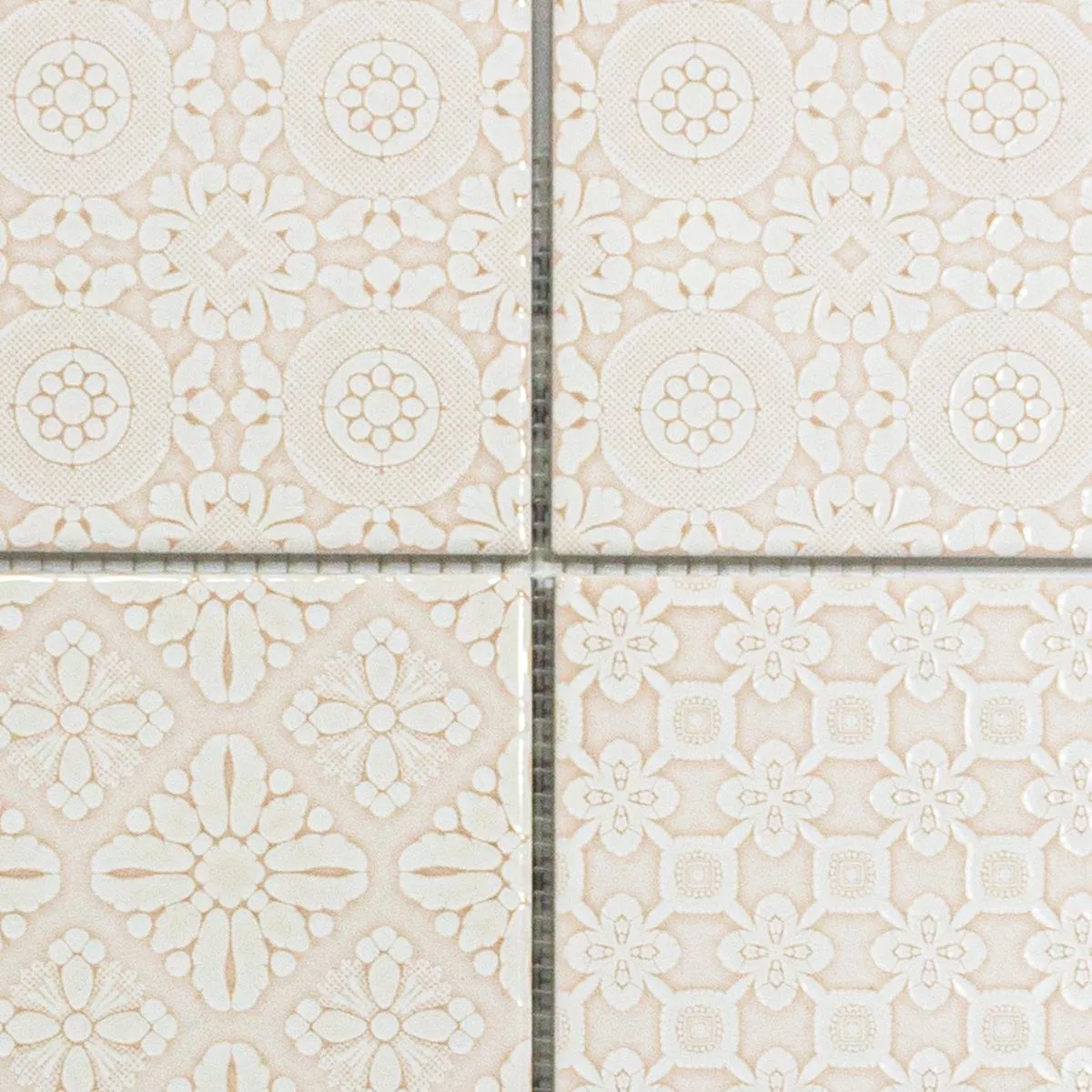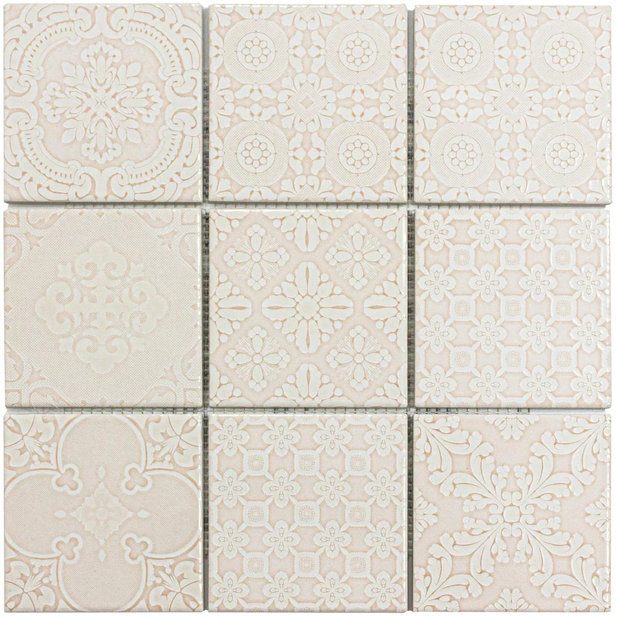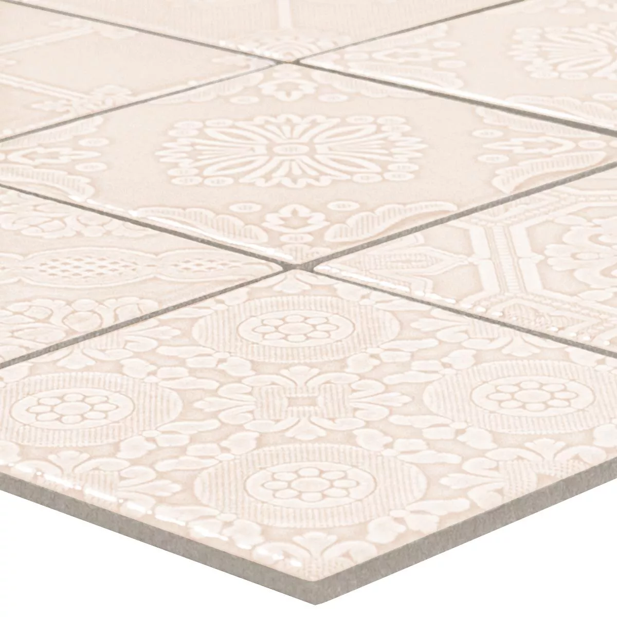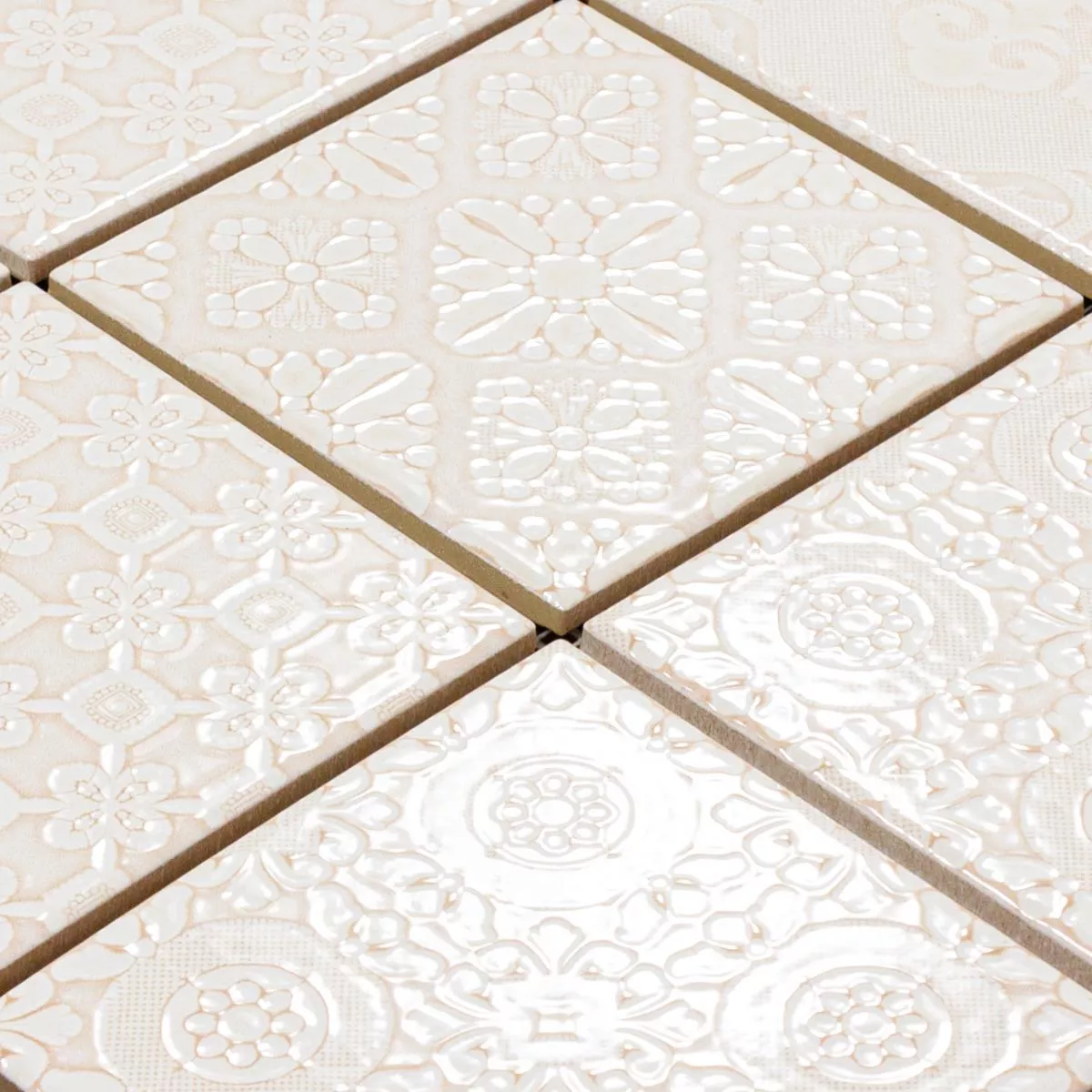Bring a nostalgic elegance to your home with our Rivabella Relief Pink ceramic mosaic tiles. These square floor and wall tiles with a stone size of 97x97mm give your living room, kitchen and bathroom a retro-inspired look. The glossy surface and relief design create a unique atmosphere. With a thickness of 6.5mm, they not only offer style, but also frost resistance and slip resistance for wet areas.
