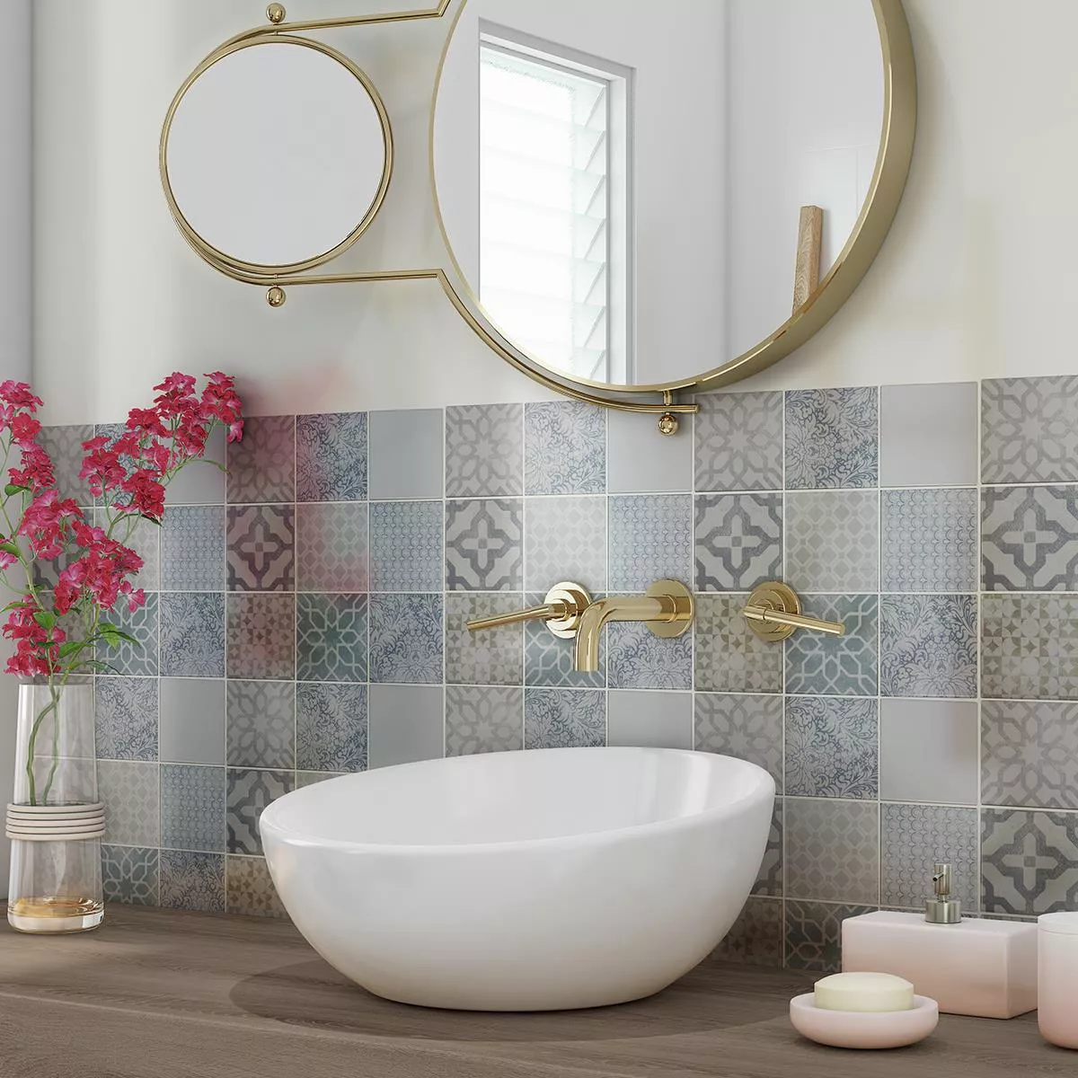 We offer timeless elegance with our ceramic mosaic tiles Venezia Ornament. These square shape floor, wall and mosaic tiles with a stone size of 97x97mm give your indoor and outdoor living space a vibrant retro look. The structured and shiny surface as well as the bright colors create a unique atmosphere.