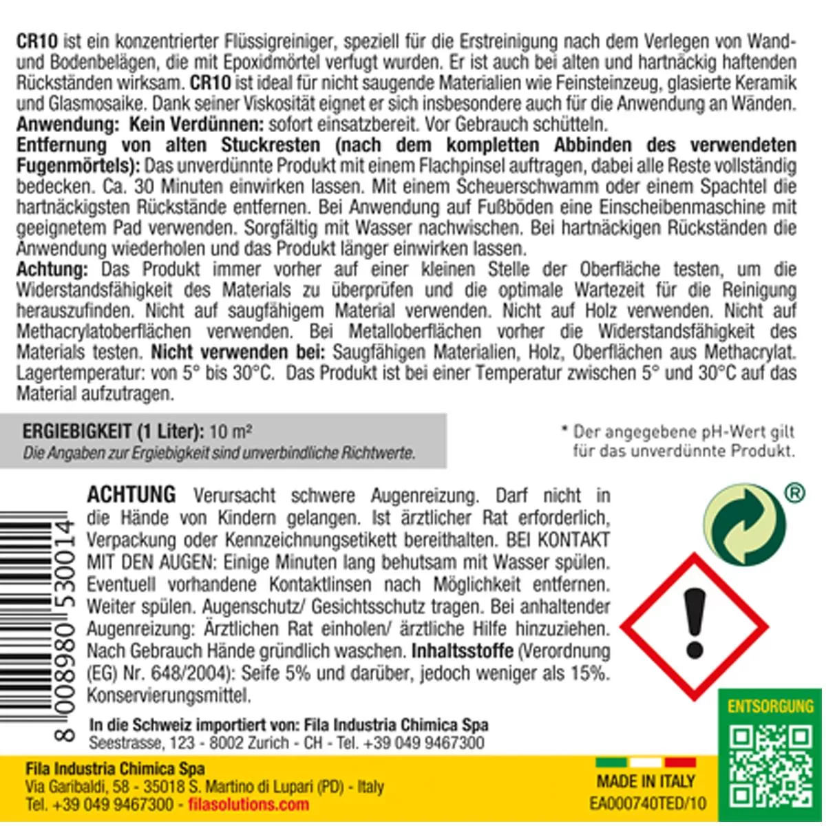 Fila CR10 Cleaner for epoxy grout 1 litre