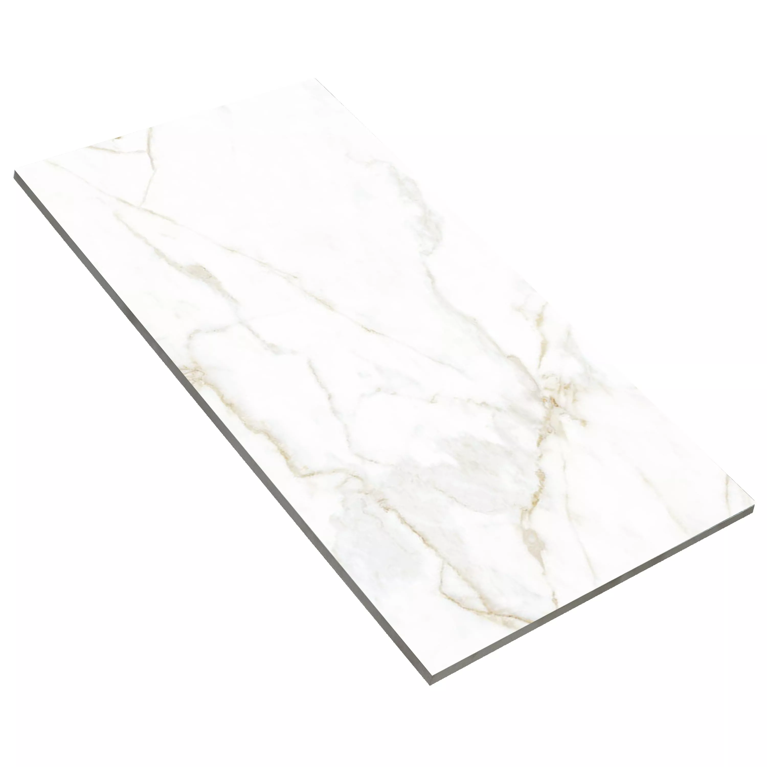 The "Arcadia Marble Look Matt Gold" floor tiles combine timeless elegance with luxurious design. In a rectangular format (60x120cm) and with a matt surface, these porcelain stoneware tiles are a stylish addition to your living room, kitchen, bathroom and shower. The marble look in white and gold gives your interior an exclusive atmosphere.