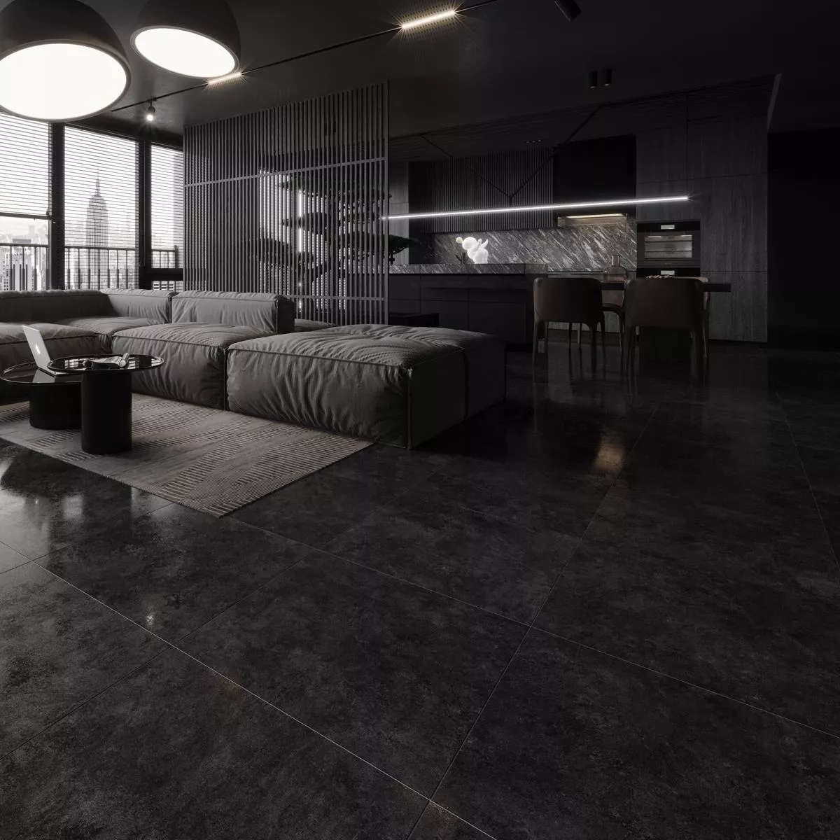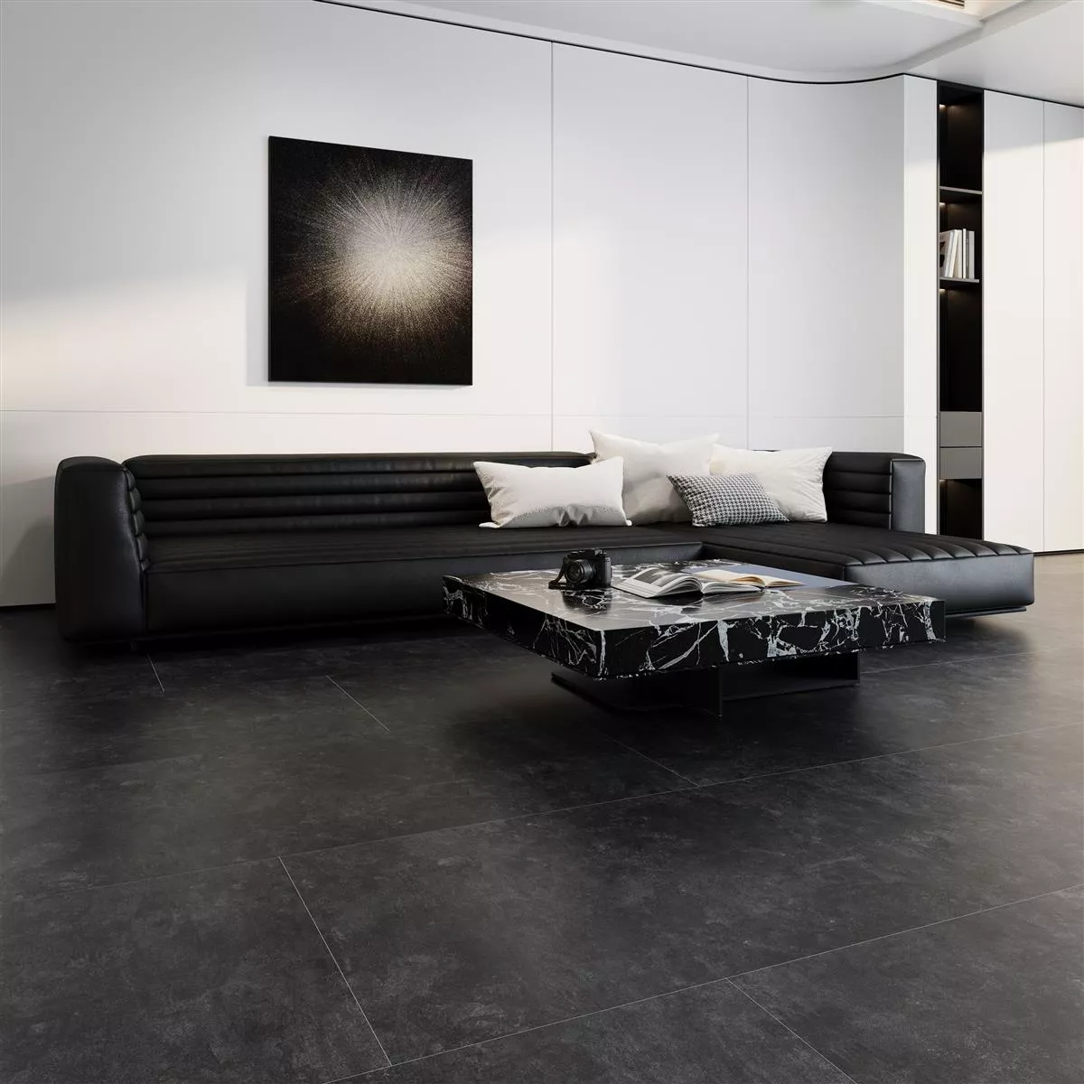 The Triton porcelain stoneware floor tile in anthracite impresses with its modern concrete look and its versatility. With dimensions of 60x120 cm and a thickness of 8 mm, it is ideal for both indoor and outdoor use. Whether in the bathroom, kitchen, living room, hallway or laundry room - this tile fits perfectly into any environment. Its suitability for use on shower floors and shower walls is particularly noteworthy, although it can also be used as a wall tile.