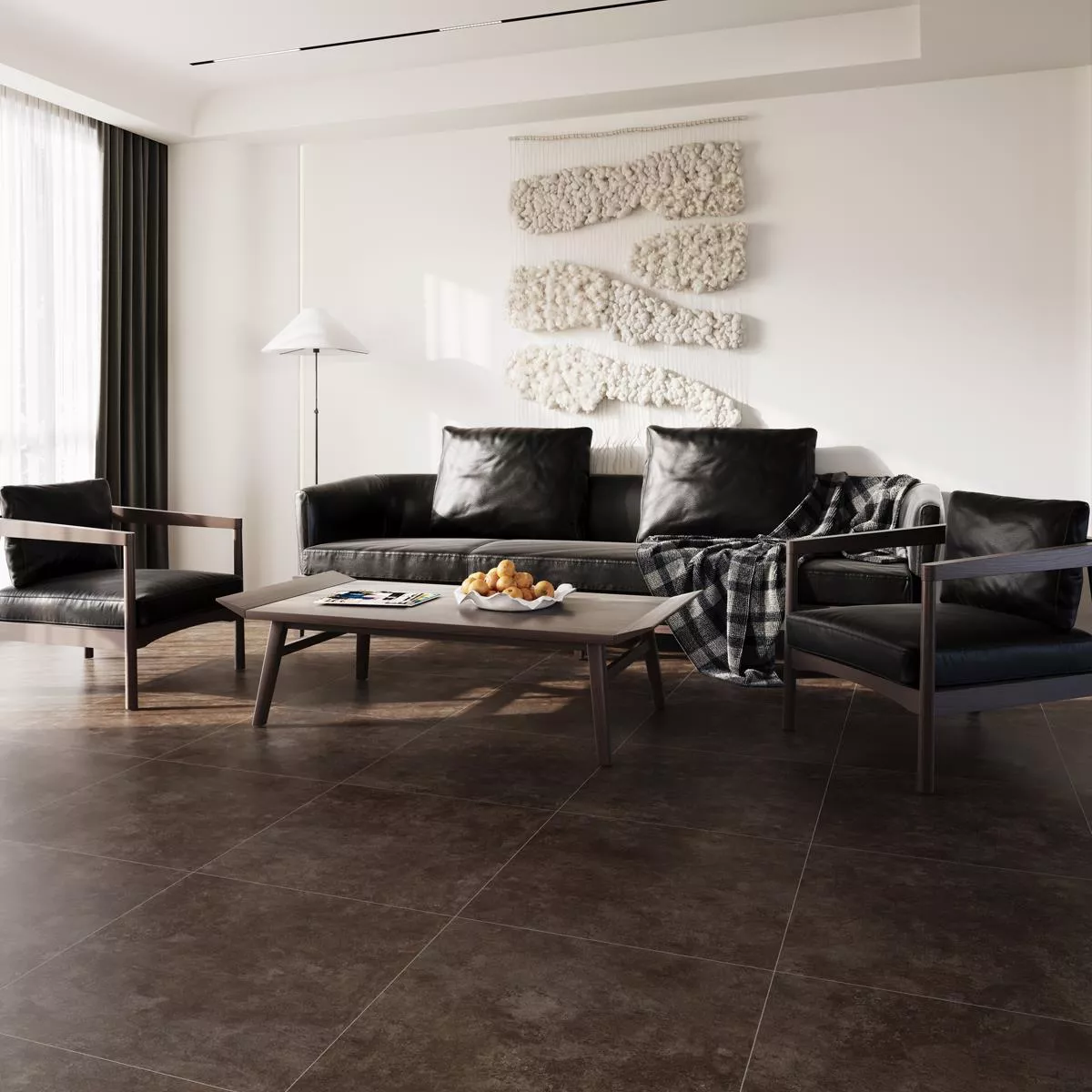 The Triton porcelain stoneware floor tile in brown combines aesthetic design with high functionality. With its modern concrete look and matt, glazed surface, this tile fits perfectly into a wide variety of room concepts. Whether as a floor tile or wall tile, it is ideal for use in the kitchen, bathroom, hallway, living room and other indoor and outdoor areas. Its suitability for underfloor heating is particularly practical, as it enables even heat distribution and is also frost-proof, waterproof and non-slip (R9).