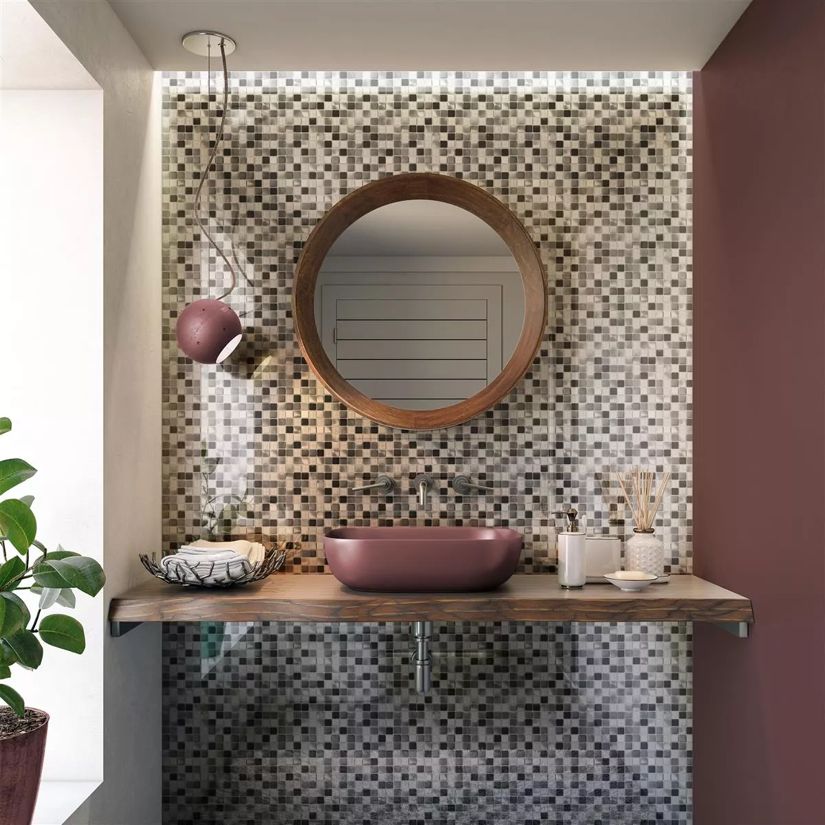 Every tile and every mosaic have different requirements for trimming, laying and und processing due to individual material characteristics and usage conditions. Please ask a local expert for correct and secure laying of your mosaics or tiles. We are not liable for unprofessional usage and faulty workmanship of constructions materials.