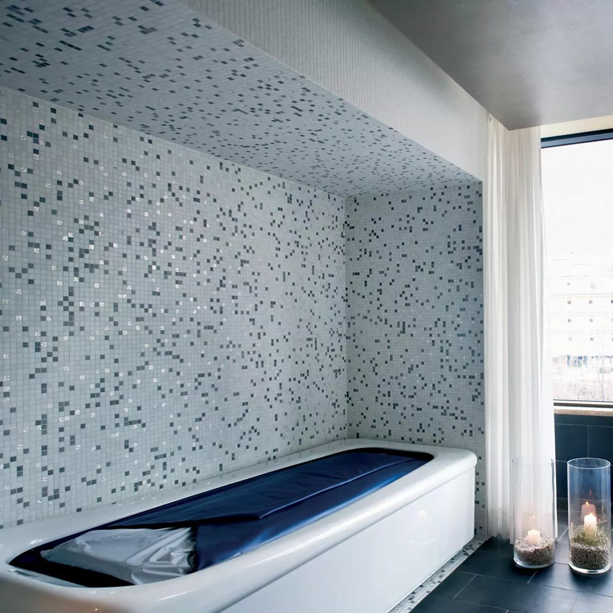 With a 20x20 mm stone size and a surface coverage of 2 m², it can be installed precisely and lends an elegant look to living rooms, hallways, conservatories, and laundry rooms. It's also ideal for kitchen or bathroom backsplashes and garage walls. The Vitreo 161 mosaic tile combines aesthetics with durability and fits perfectly into any sophisticated interior design concept.