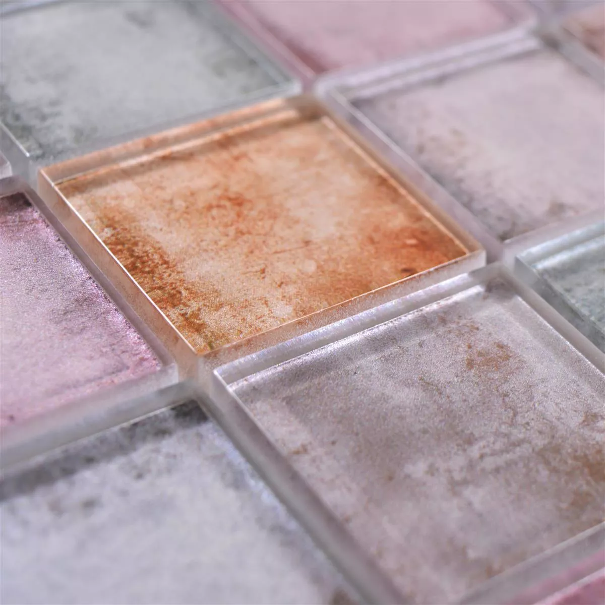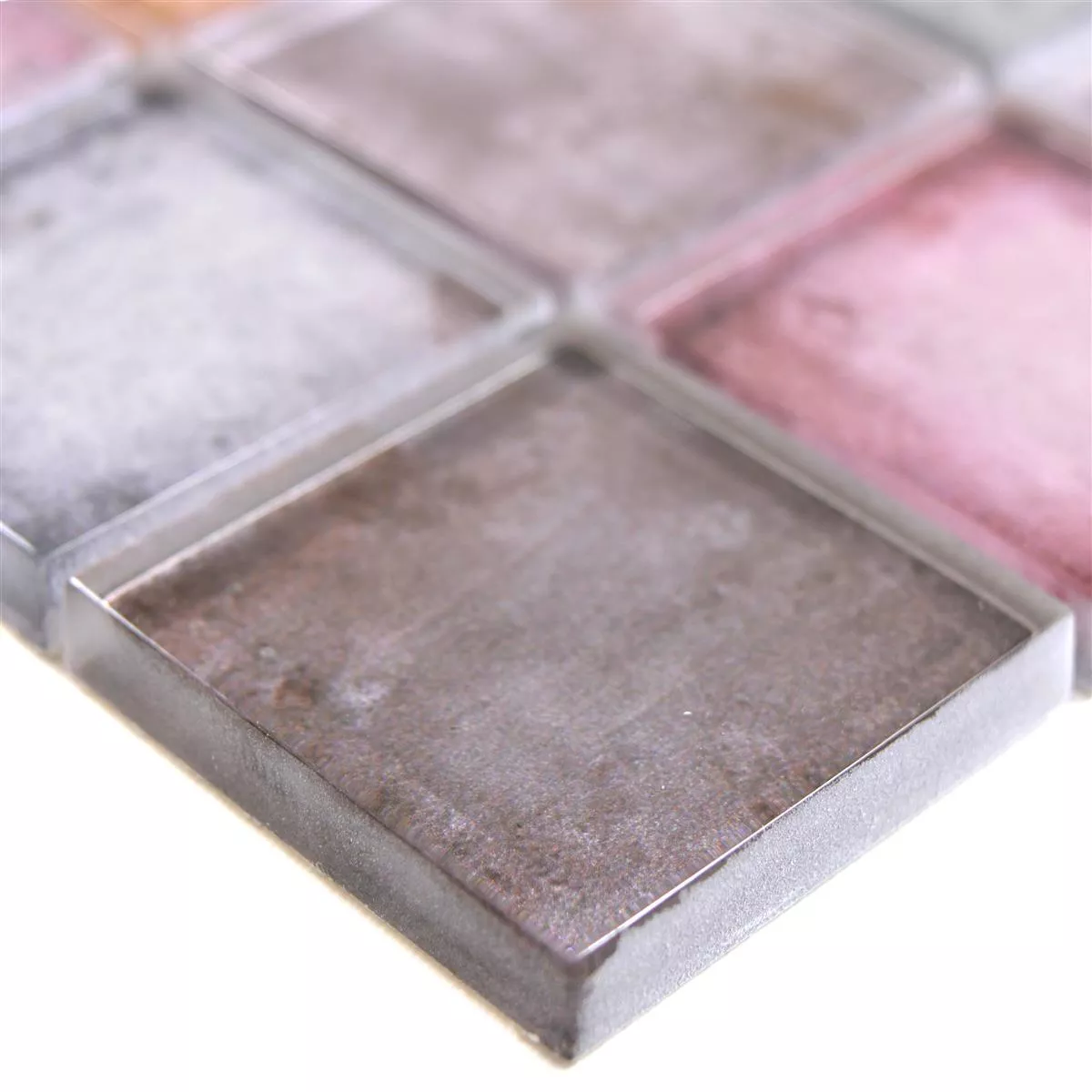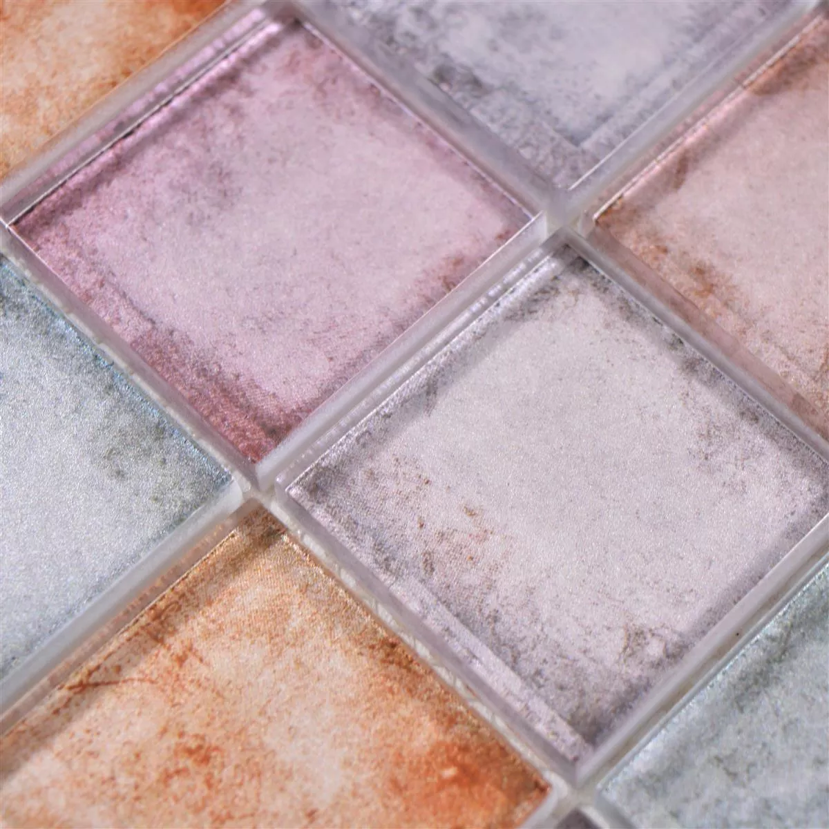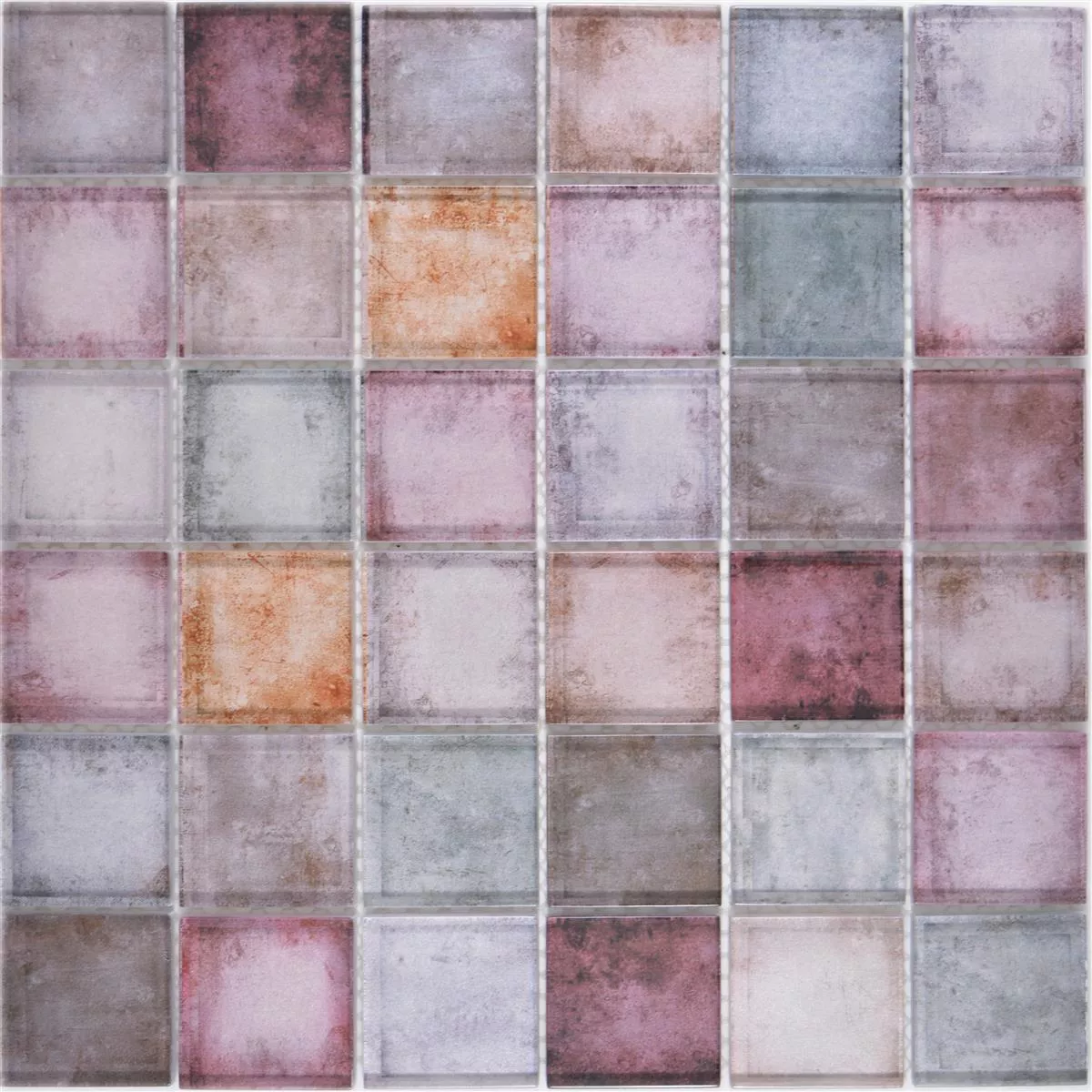 The glass mosaic tiles Clementine have a so-called "mat size" of 30 x 30 cm and a stone size of 48 x 48 mm each. The surface structure can be described as glossy and the thickness of the respective tiles is 8 mm. The square glass tiles are suitable for the entire interior and especially for the so-called "wet area" (i.e. for the bathroom or the guest toilet).