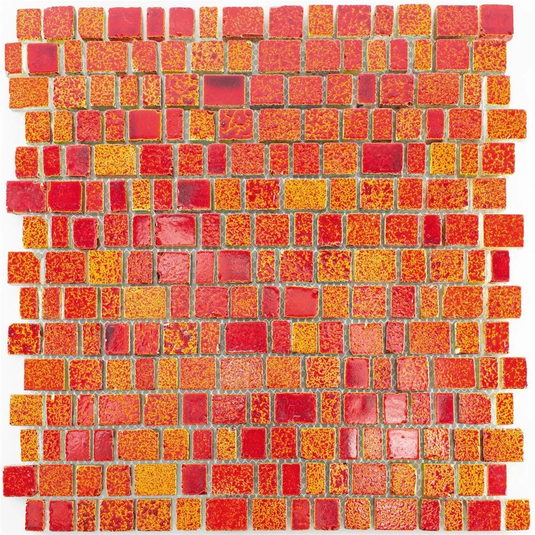 The Economy glass mosaic tiles in red and yellow bring vibrant colors and a retro look to any room. These glass mosaic tiles have a matte surface and are suitable for both walls and floors.