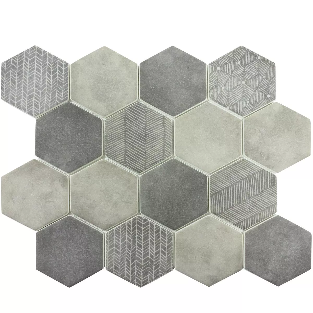 Glass Mosaic Tiles Hammerbrook Hexagon Grey