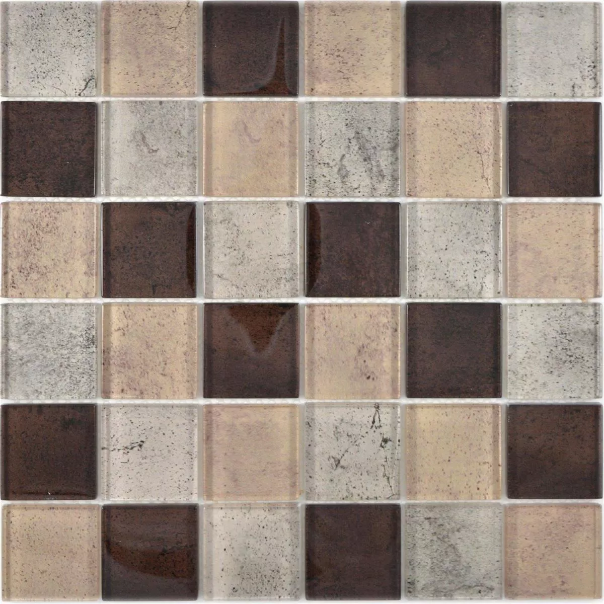 Set warm and elegant accents in your home with the Mignon glass mosaic tiles in brown. These exquisite glass tiles are specially designed for wall cladding and are ideal for bathrooms, kitchens, living rooms and showers. The glossy surface and concrete look give your walls a modern and stylish look.