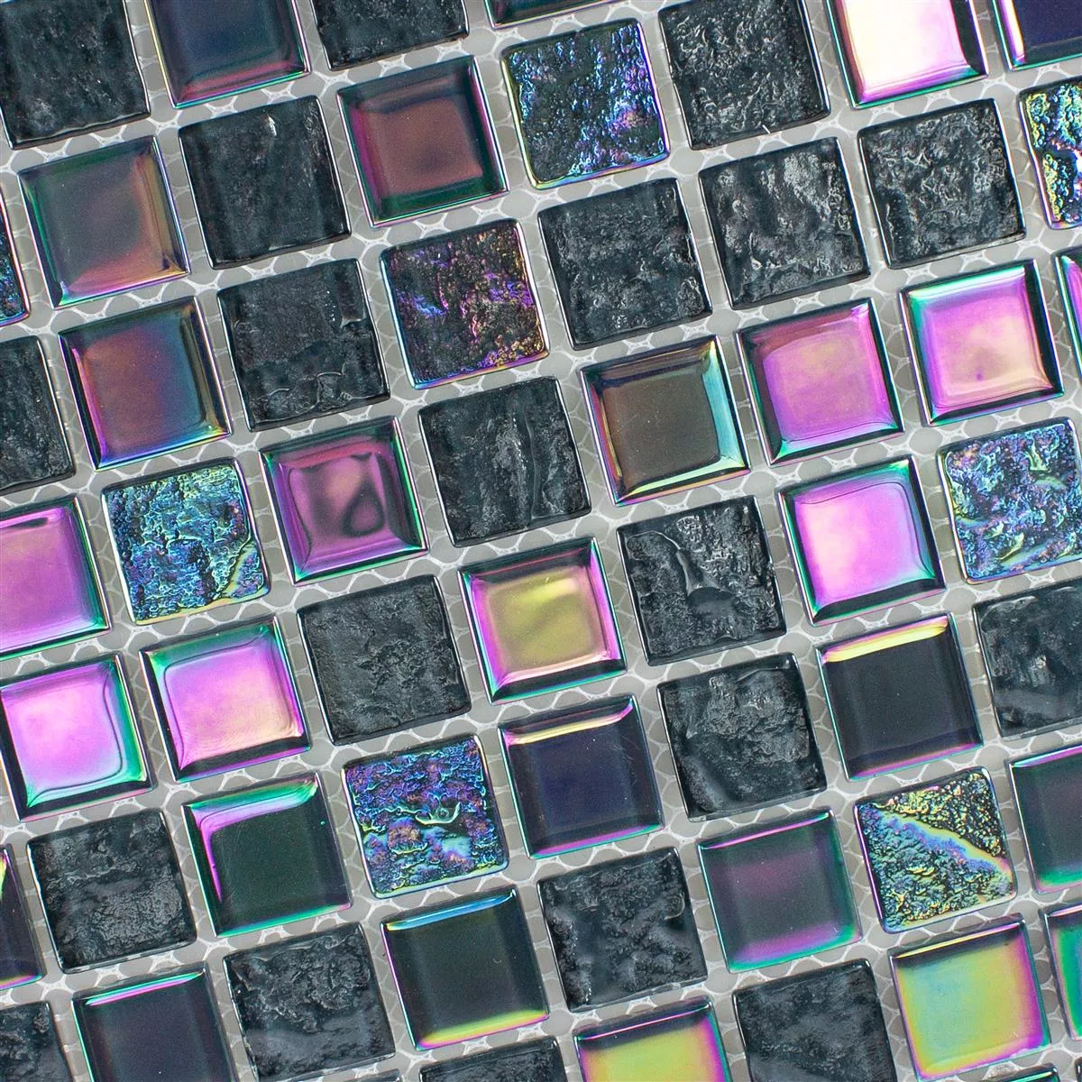 The "Manor" glass mosaic in black offers an elegant and versatile solution for stylish wall and floor coverings. Made from high-quality glass, this mosaic features a combination of matte, glossy and textured surfaces that give the room a luxurious mother-of-pearl effect.