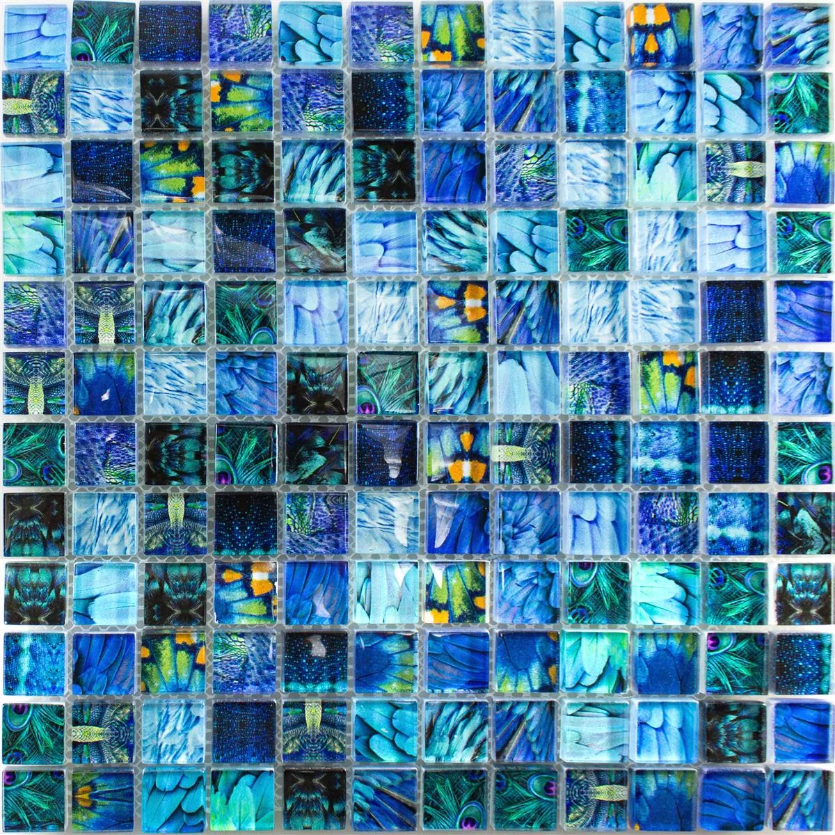 The durable glass material provides a glossy surface finish that adds a luxurious touch to your space. With their square tile format, these tiles are a practical addition to any room in your home, including storage rooms and hallways. Peafowl mosaic tiles are suitable for both wall and shower enclosure installation, making them an ideal choice for your bathroom.