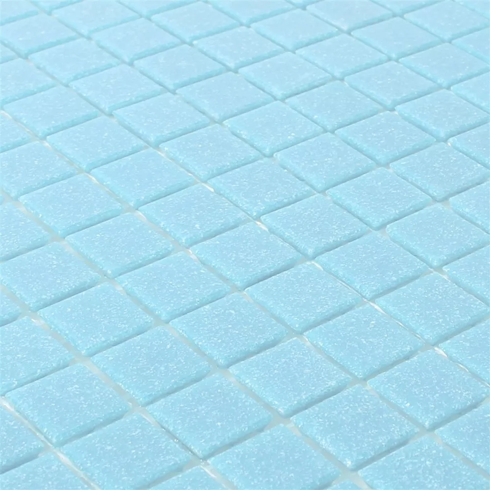 The glass mosaic tiles Potsdam in the color sky blue are perfect for the design of the bathroom and the kitchen back wall. A mosaic on the wall in the bathroom draws everyone's attention. It skilfully stages the wall and creates the desired atmosphere in the room.