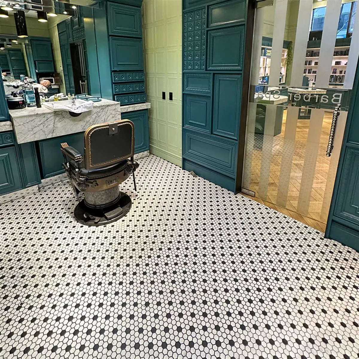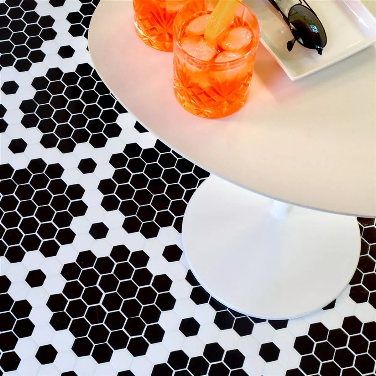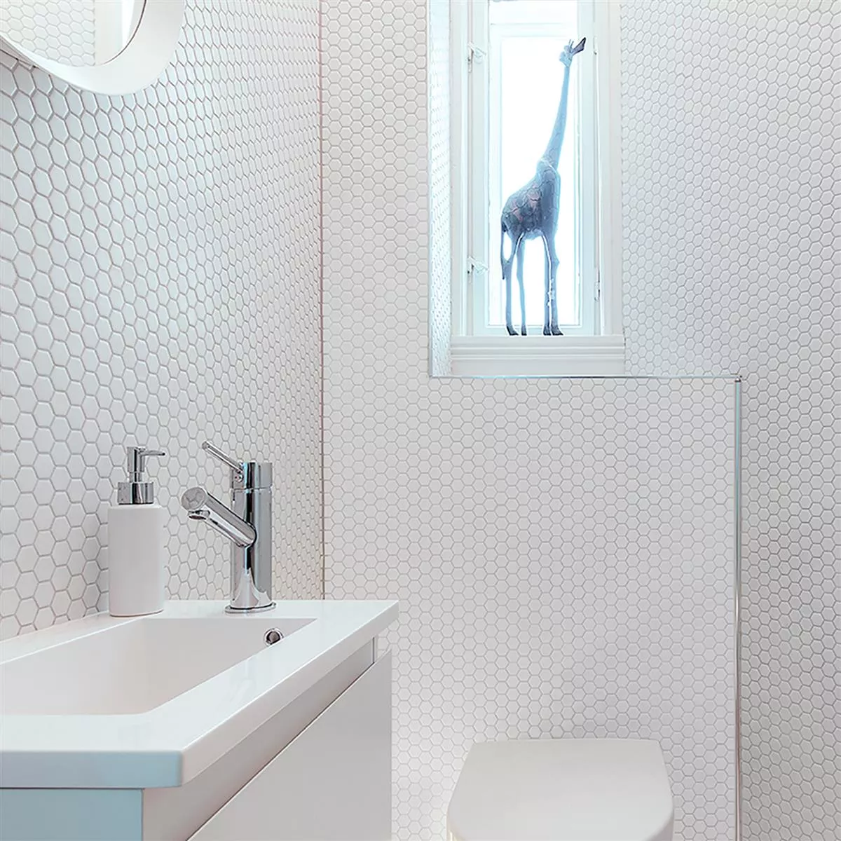 The hexagonal mosaic tiles are suitable not only for indoor use, such as in living rooms or bathrooms, but also for outdoor use. Their frost resistance makes them ideal for garage walls or the floor of outdoor shower areas. Thanks to their water-resistant and waterproof properties, the mosaic tiles are ideal for shower walls, shower floors, bathroom backsplashes, and, of course, pools.