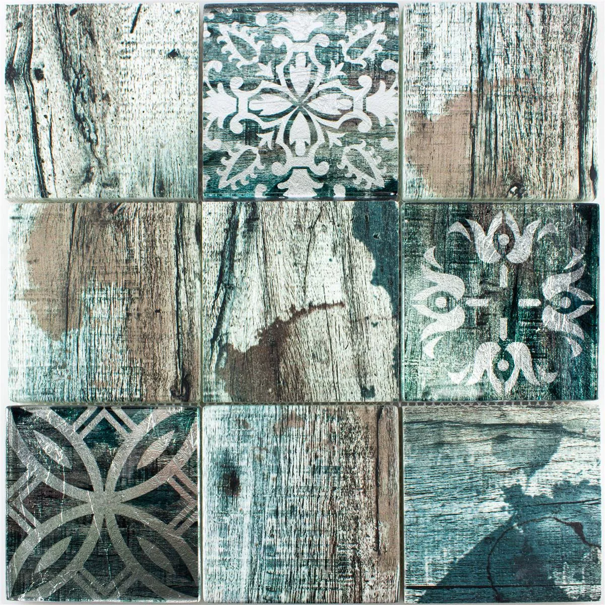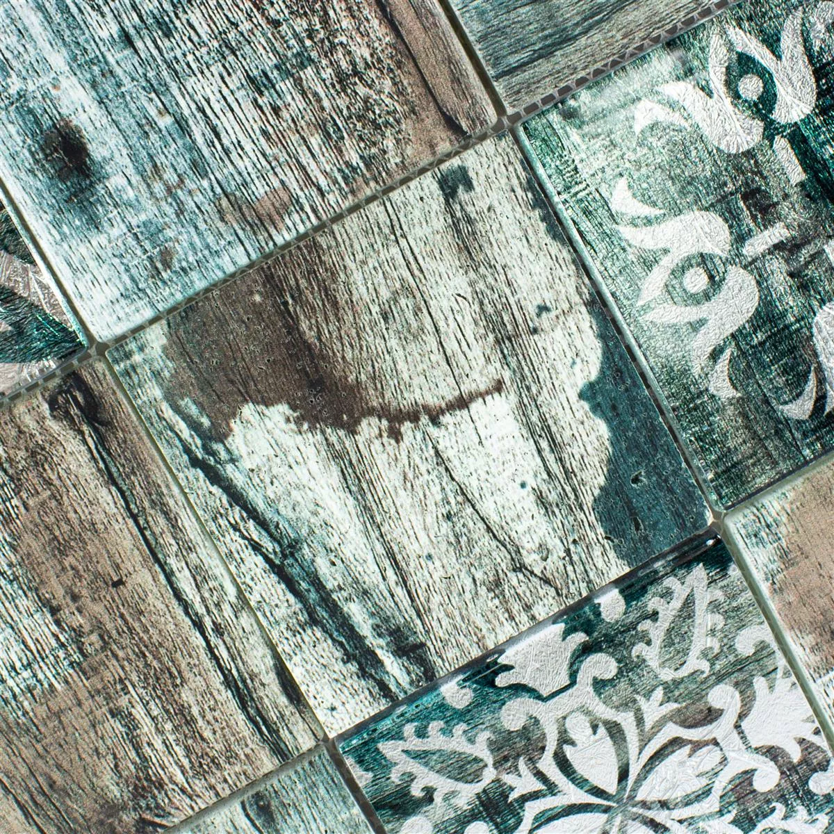 Glass Mosaic Tiles Wood Optic Norwalk Grey Brown Green Q98