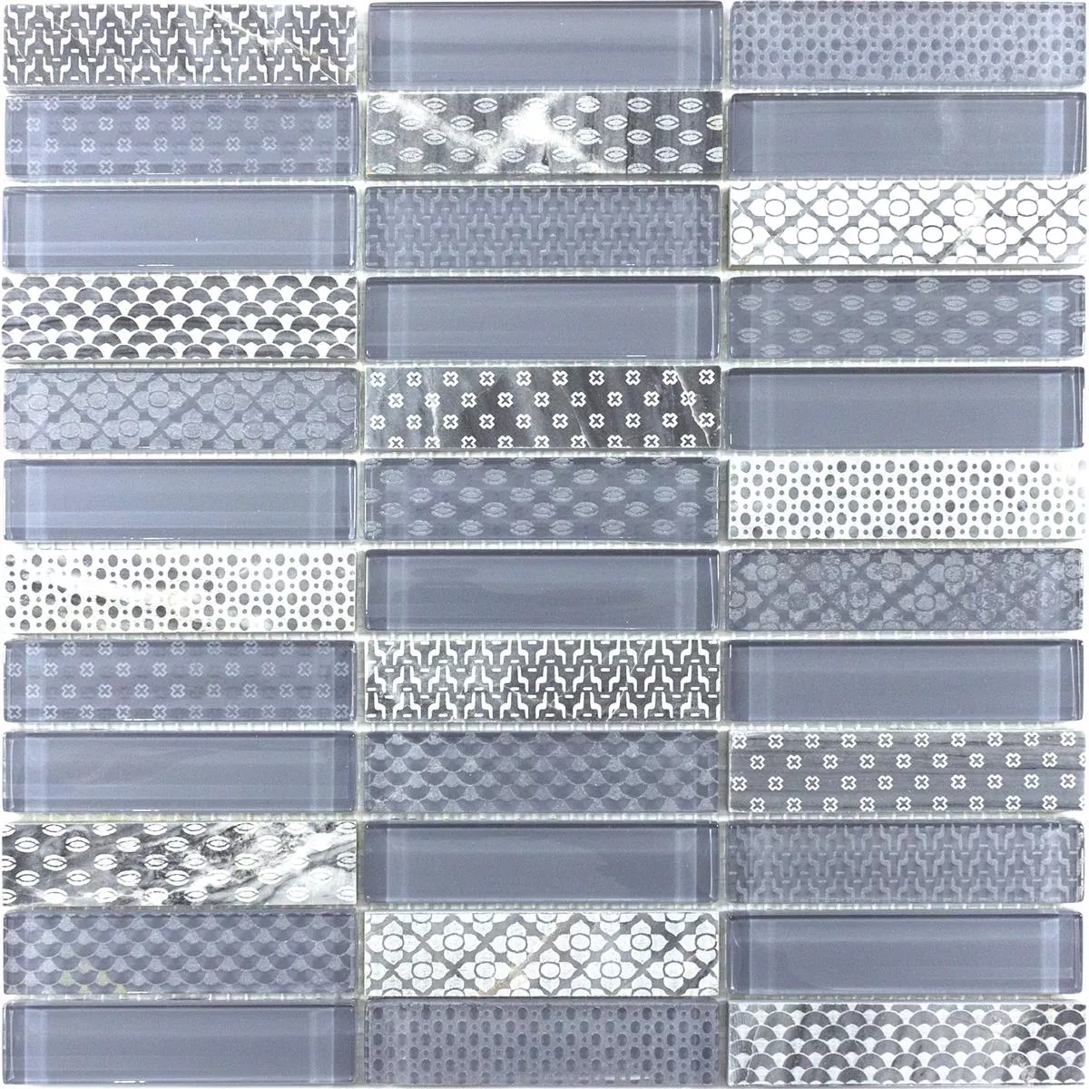 Glass Natural Stone Mosaic Tiles Celestiana Ornament Brick Grey Mix