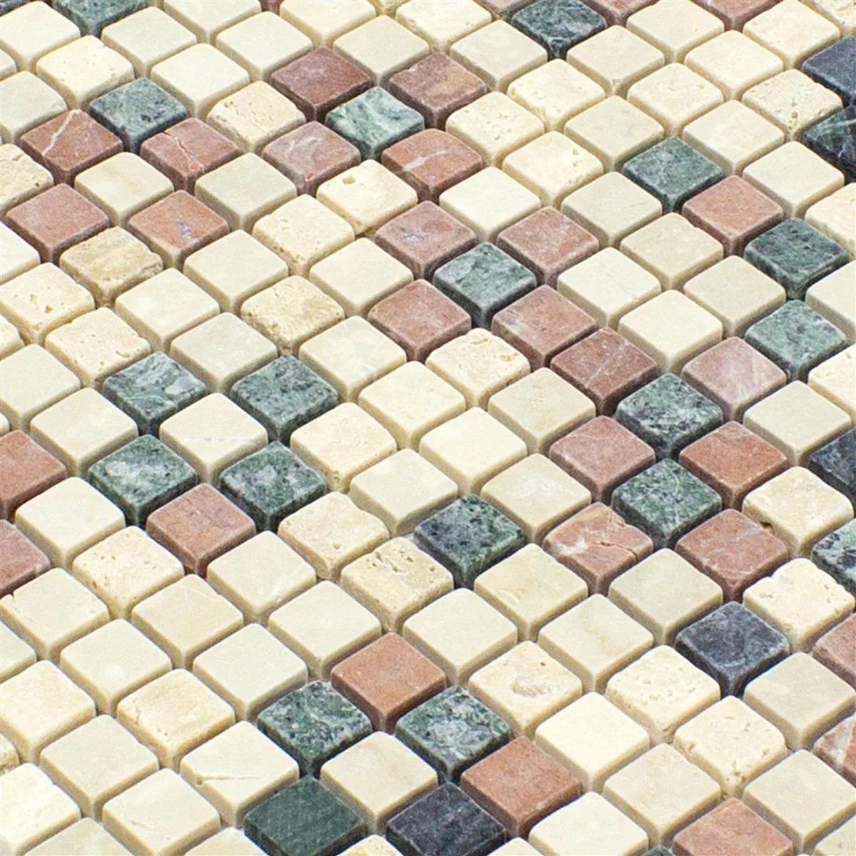 This marble natural stone mosaic tile from Antebia is an excellent choice if you are looking for a tile that offers a unique look and durability. The use of natural stone and marble ensures a strong and durable surface that is easy to clean and maintain. The mix of bright colors gives every room a special atmosphere and an individual touch.