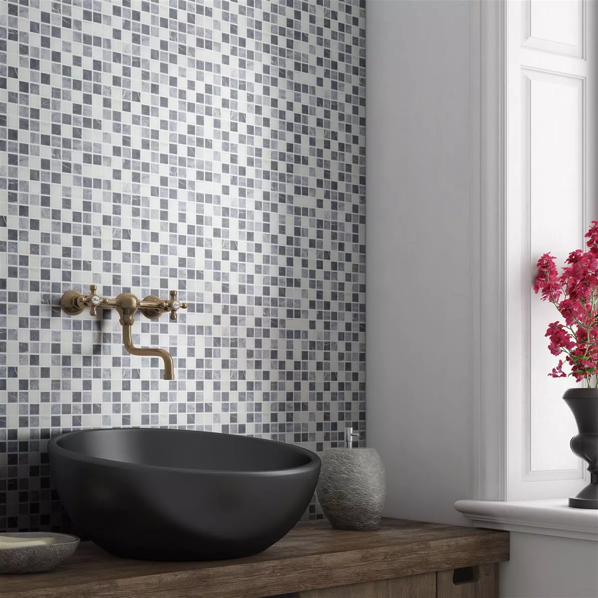 The Stanford marble mosaic tiles in grey and white combine natural elegance with functional properties. Made from high-quality marble, these tiles offer a matte finish that creates a stylish, sophisticated look while being practical and easy to maintain.