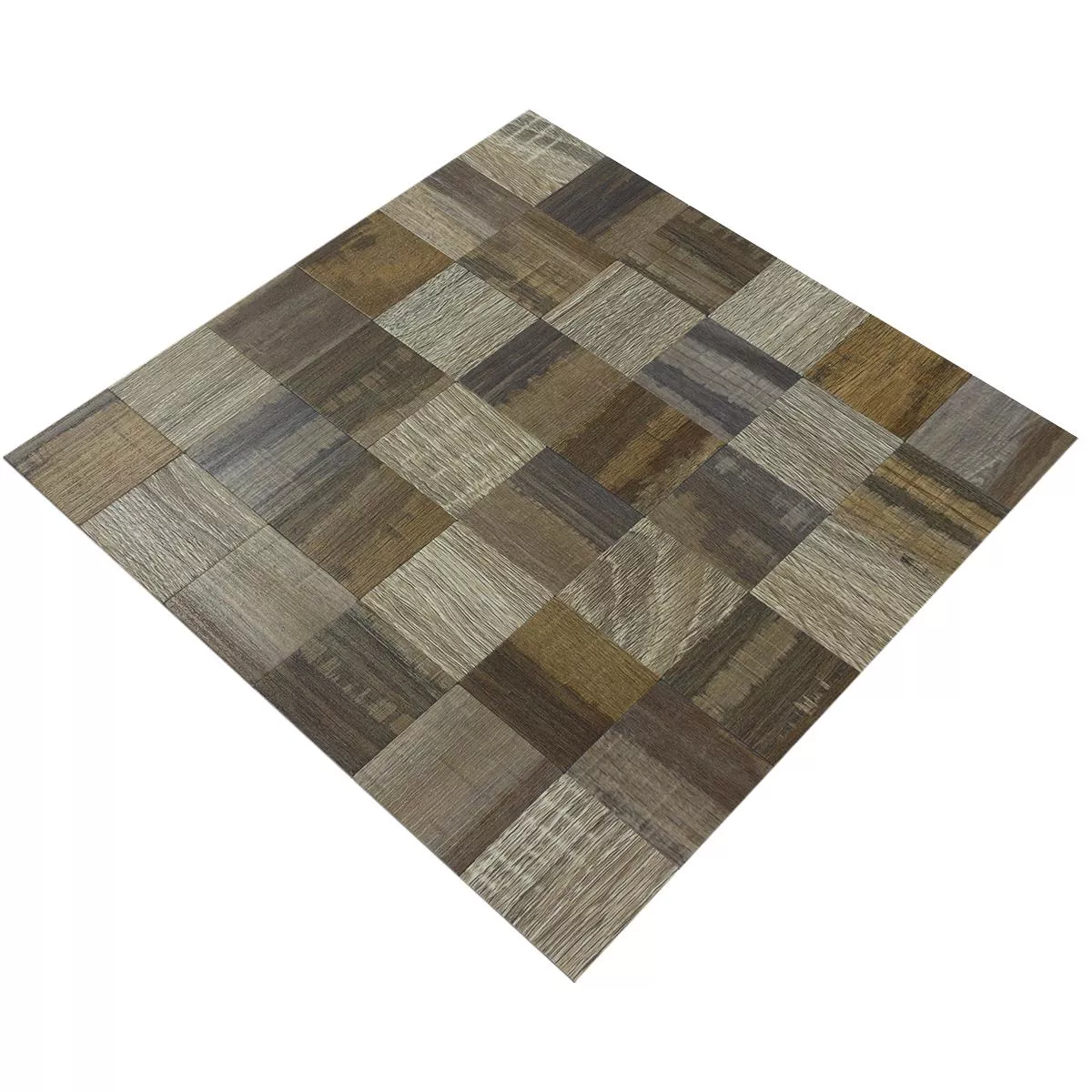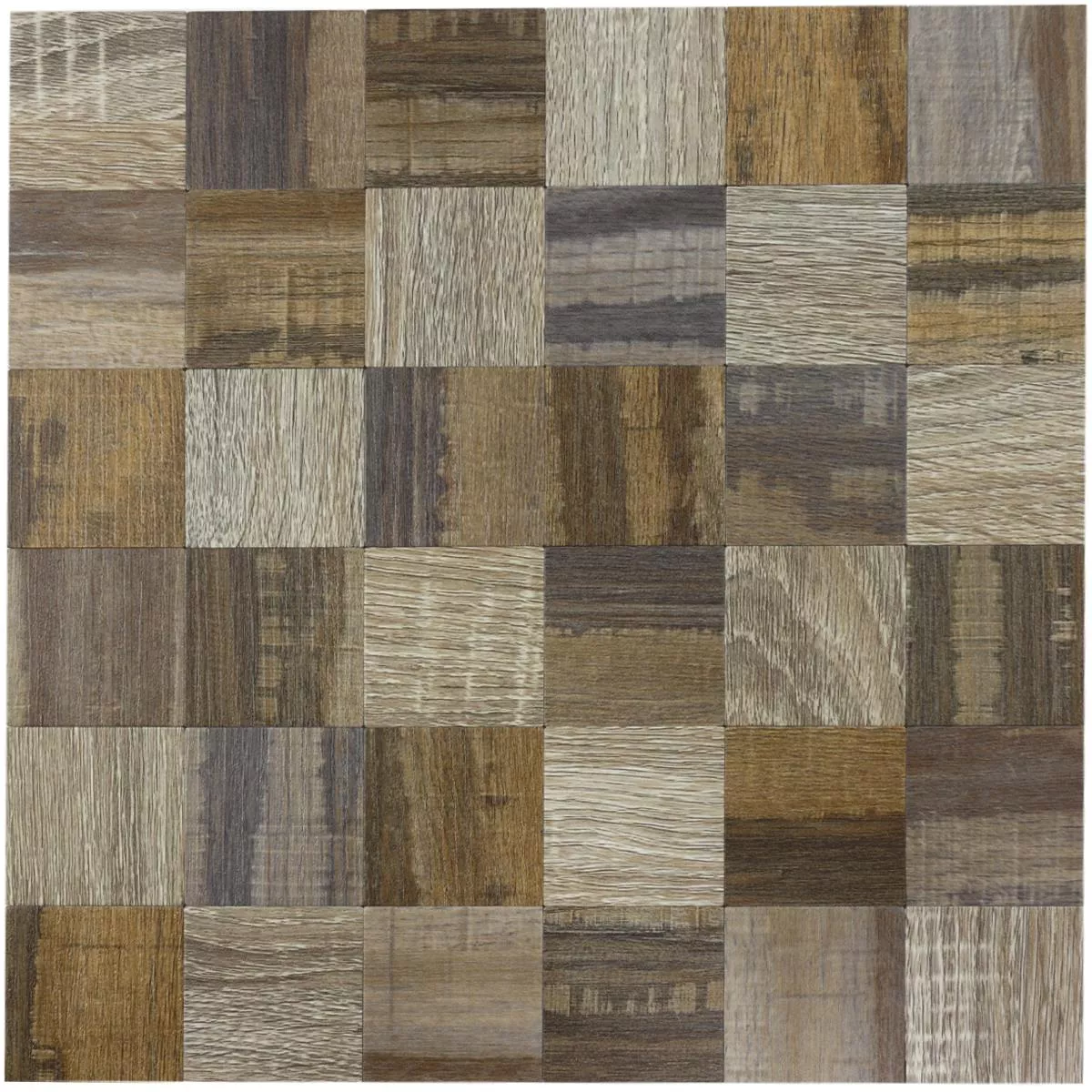Metal Mosaic Tile Self Adhesive Wood Optic Skypia Brown Beige