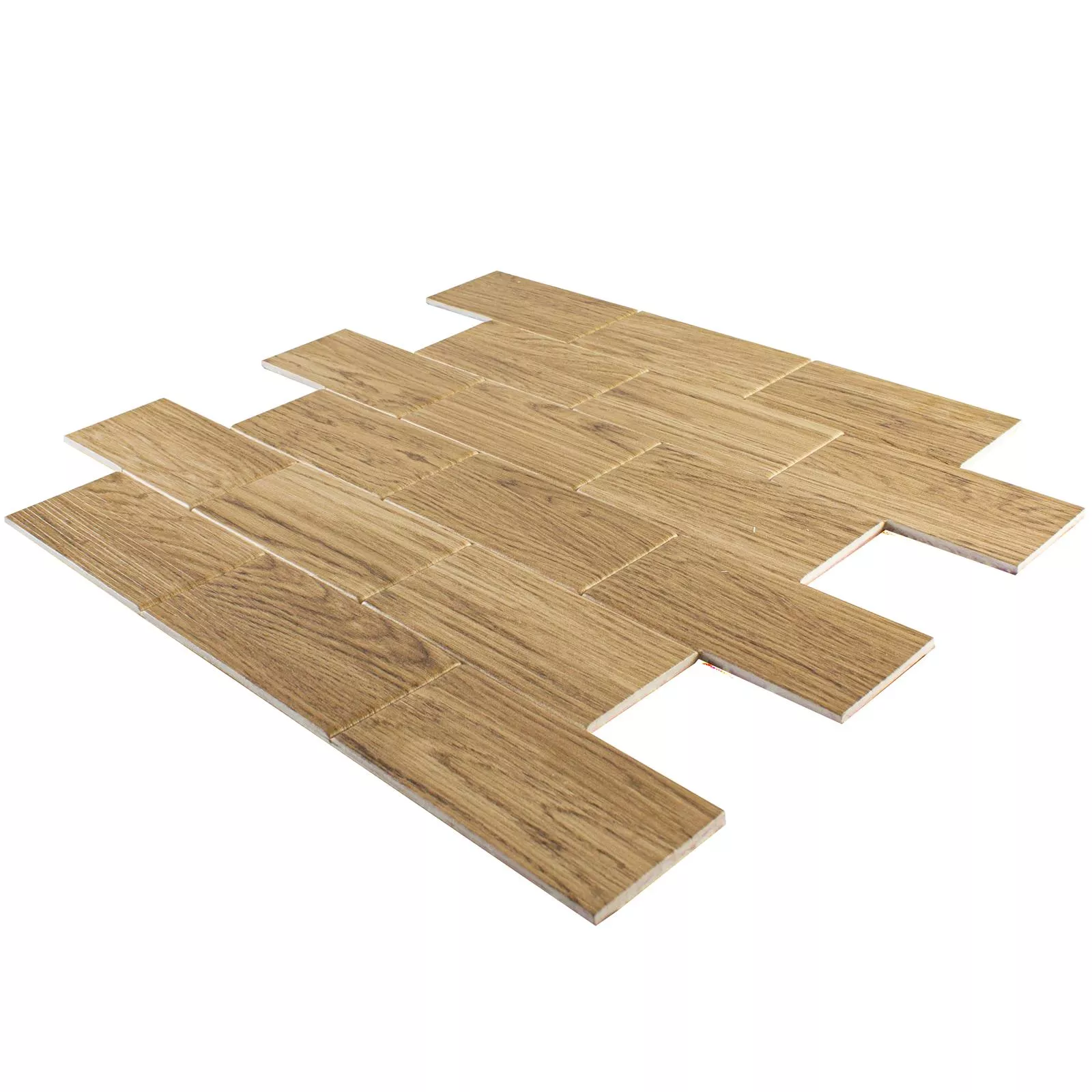The Medusa mosaic tile in brown offers a stylish wood look and is made from vinyl known for its durability and ease of use. This self-adhesive mosaic tile is perfect for use on walls and makes installation easy as no additional glue is required.