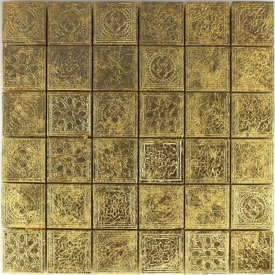 The elegant mosaic tile makes every room shine. The golden squares are decorated with a playful pattern. As an inlay tile, they can be used decoratively.