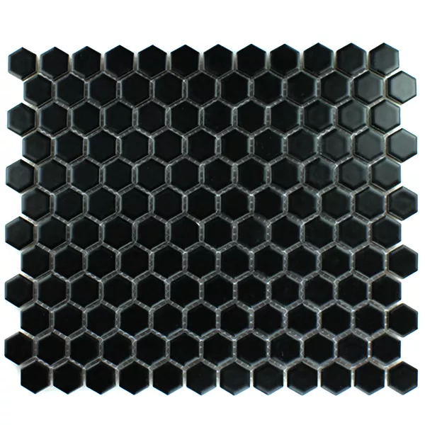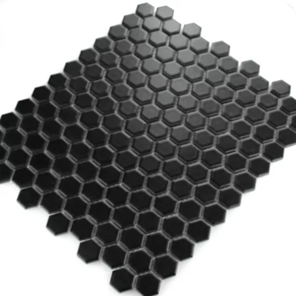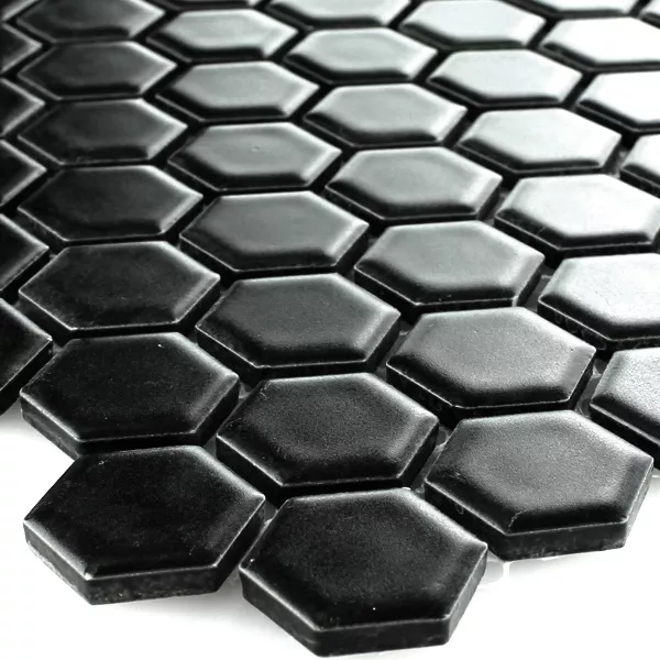 Mosaic Tiles Ceramic Hexagon Black Mat H23