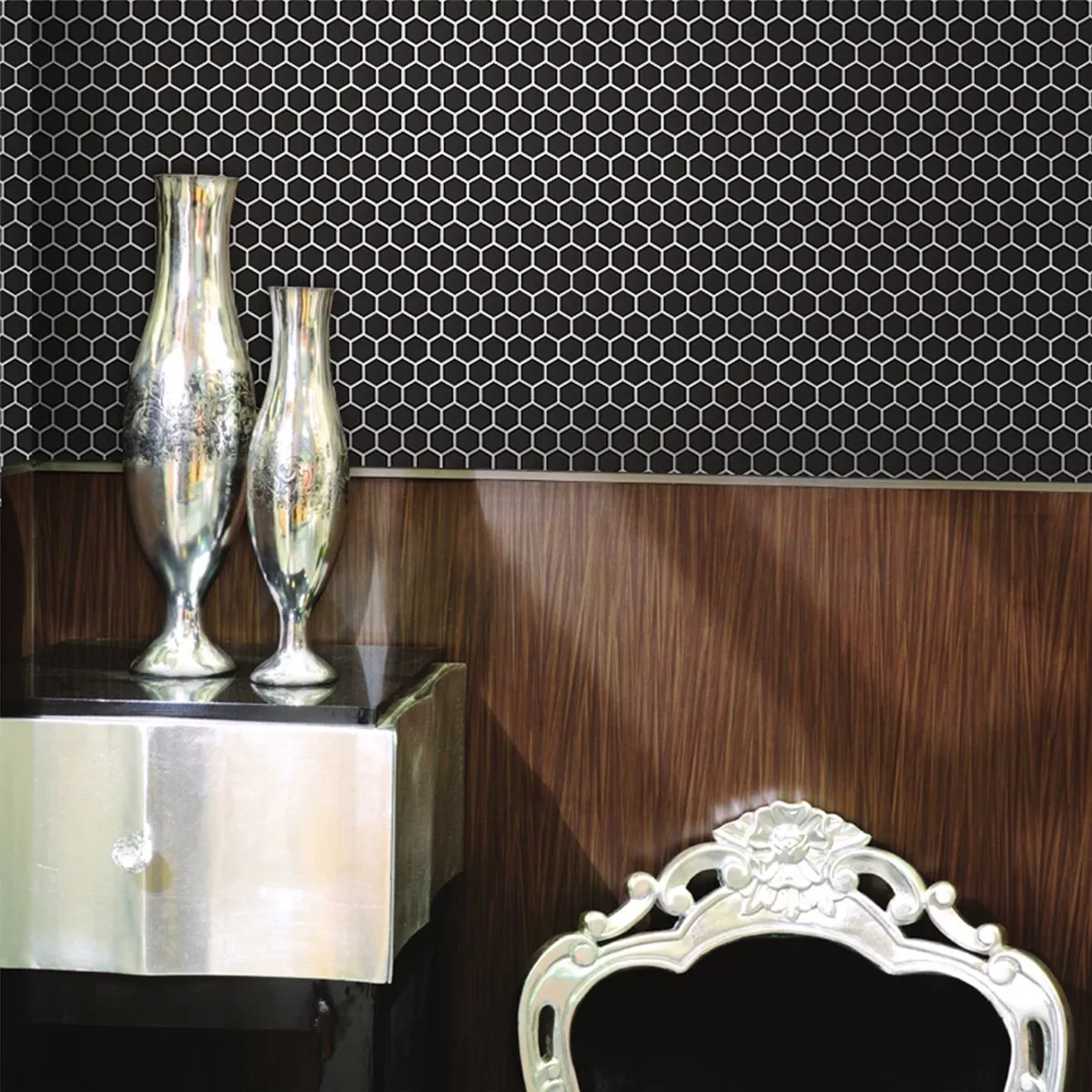 Hexagon tiles are often used in households to design toilets, hallways, kitchens and bathrooms. They are also often used as wall cladding in a brick look. The tiles are available in the colors black and white and with a matt and glossy surface. For example, they can be combined very well with panels with a wood look, for example behind a fireplace.