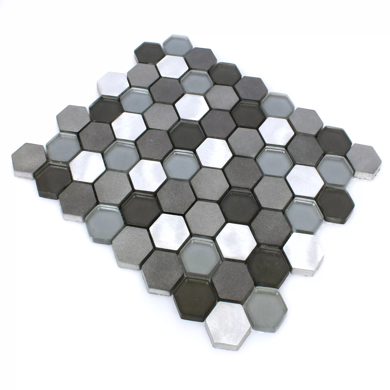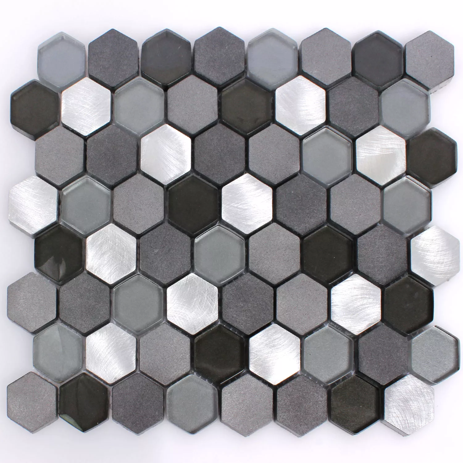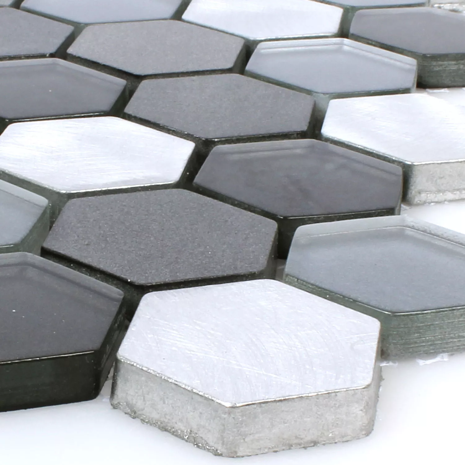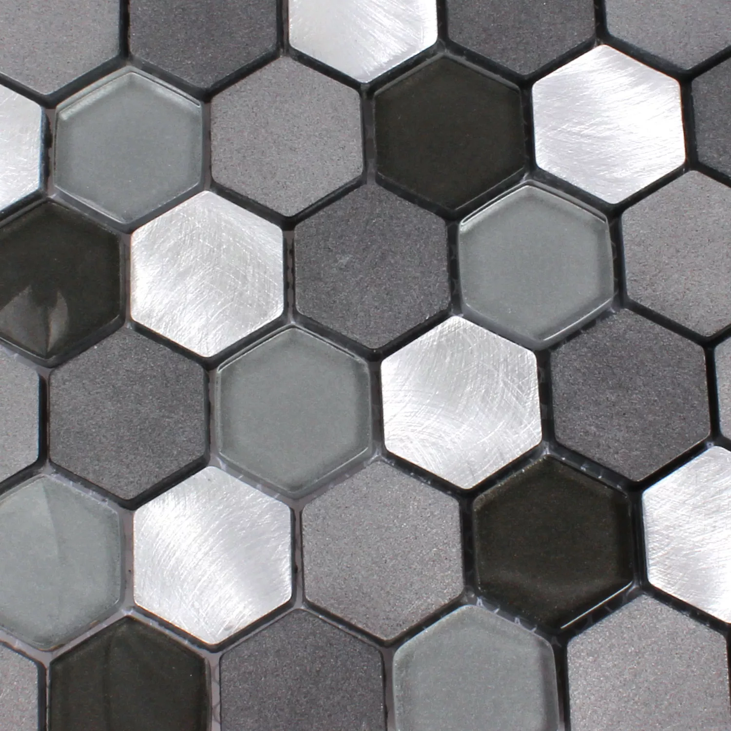 Mosaic Tiles Glass Alu Angela Hexagon Black Silver