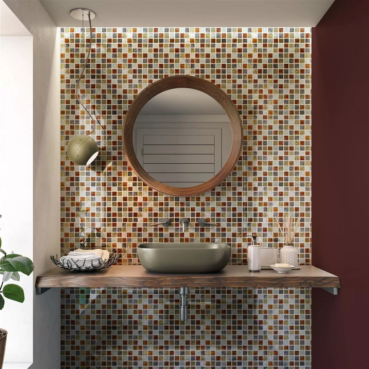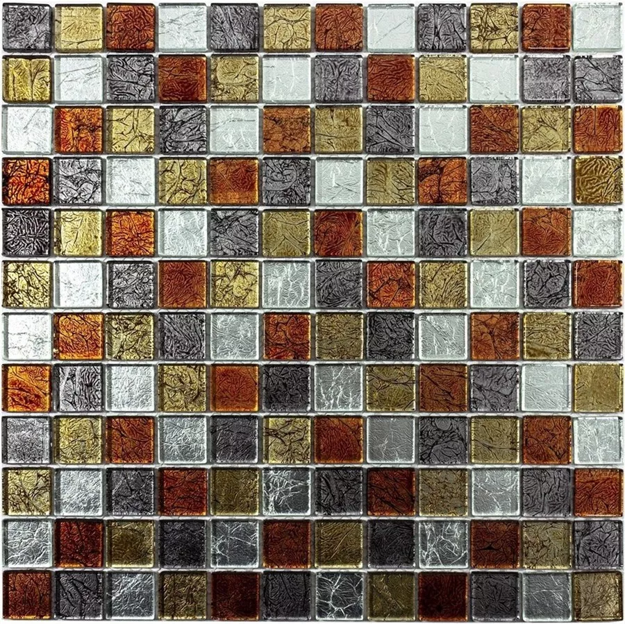 The Crystal glass mosaic tiles Bonnie Structure in the colors red, gold and silver are a stylish choice for any room. They can be used as accent or decorative tiles in different areas to create a classy and luxurious atmosphere.