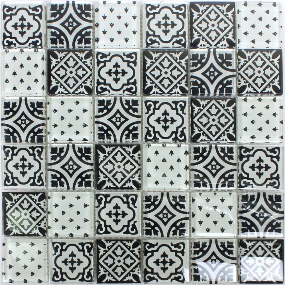 Mosaic Tiles Glass Dante Black White