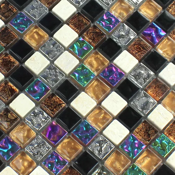 Mosaic Tiles Glass Marble Colored Mix 15x15x8mm