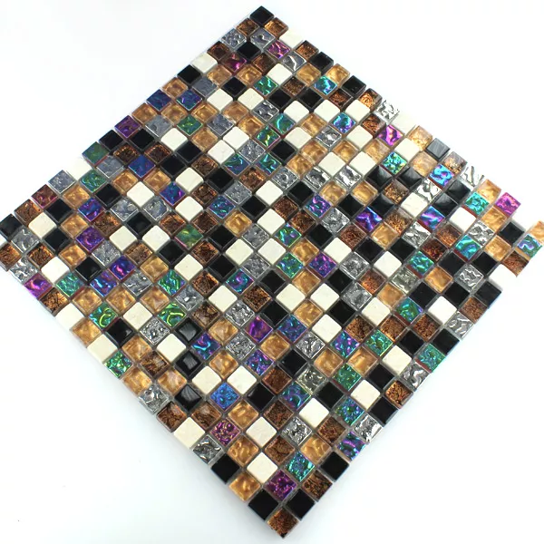 Mosaikfliesen Glas Naturstein Festus Bunt Mix