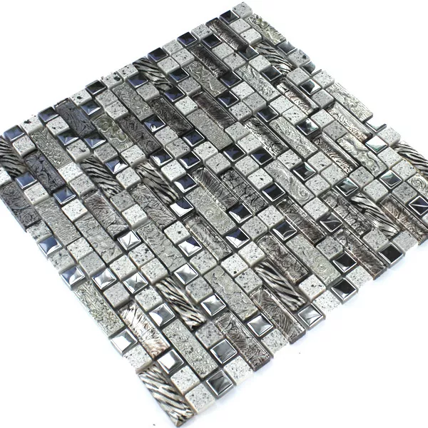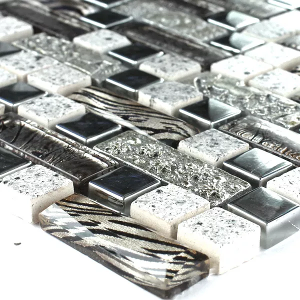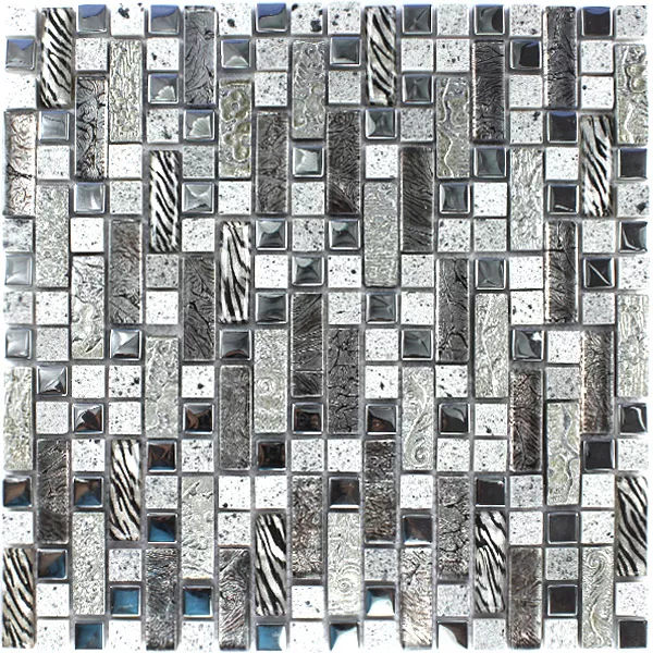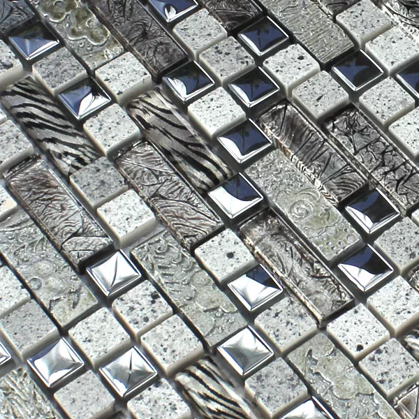Mosaic Tiles Glass Metal Quartz Composite Silver