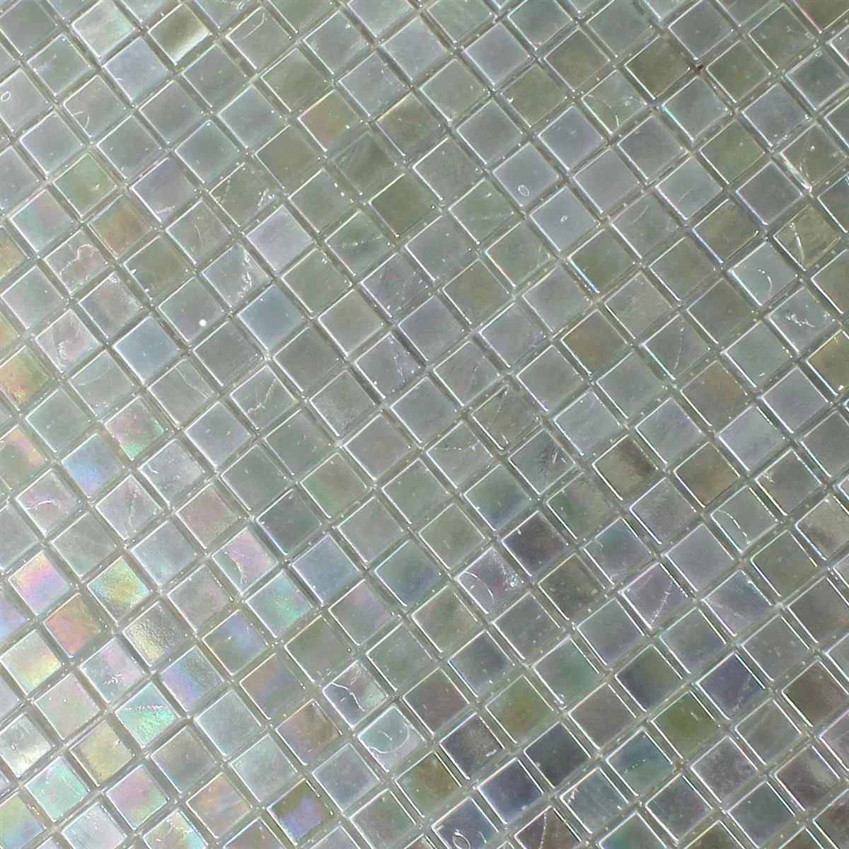 Compared to the powerful blue and red, the mother-of-pearl effect of the "White Beige" variation appears almost delicate. The white glass mosaic tiles are only used as a background to bring out the best of the bluish, yellowish, pink and other pastel colors. The color of "Amazon" is difficult to classify. These tiles are darker than the white mosaic tiles, but in direct comparison to the red and blue tiles, the "Amazon" variant is more subtle.
