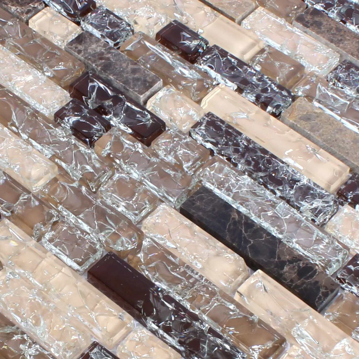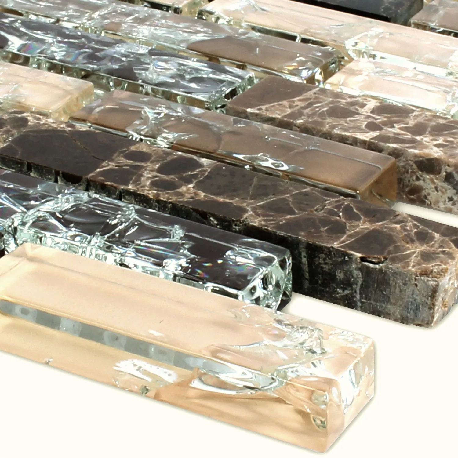 Mosaic Tiles Glass Natural Stone Broken Glass Dark Emperador