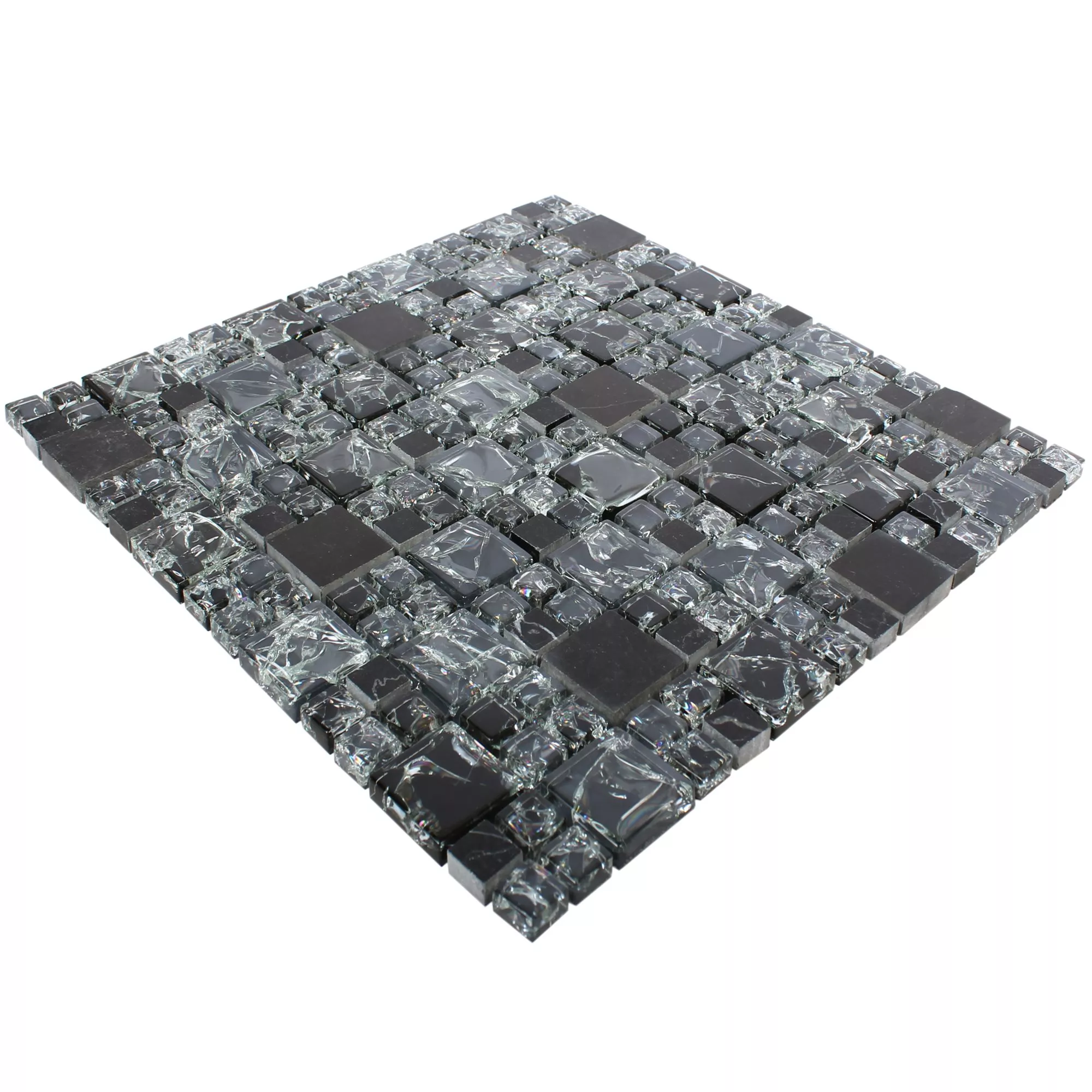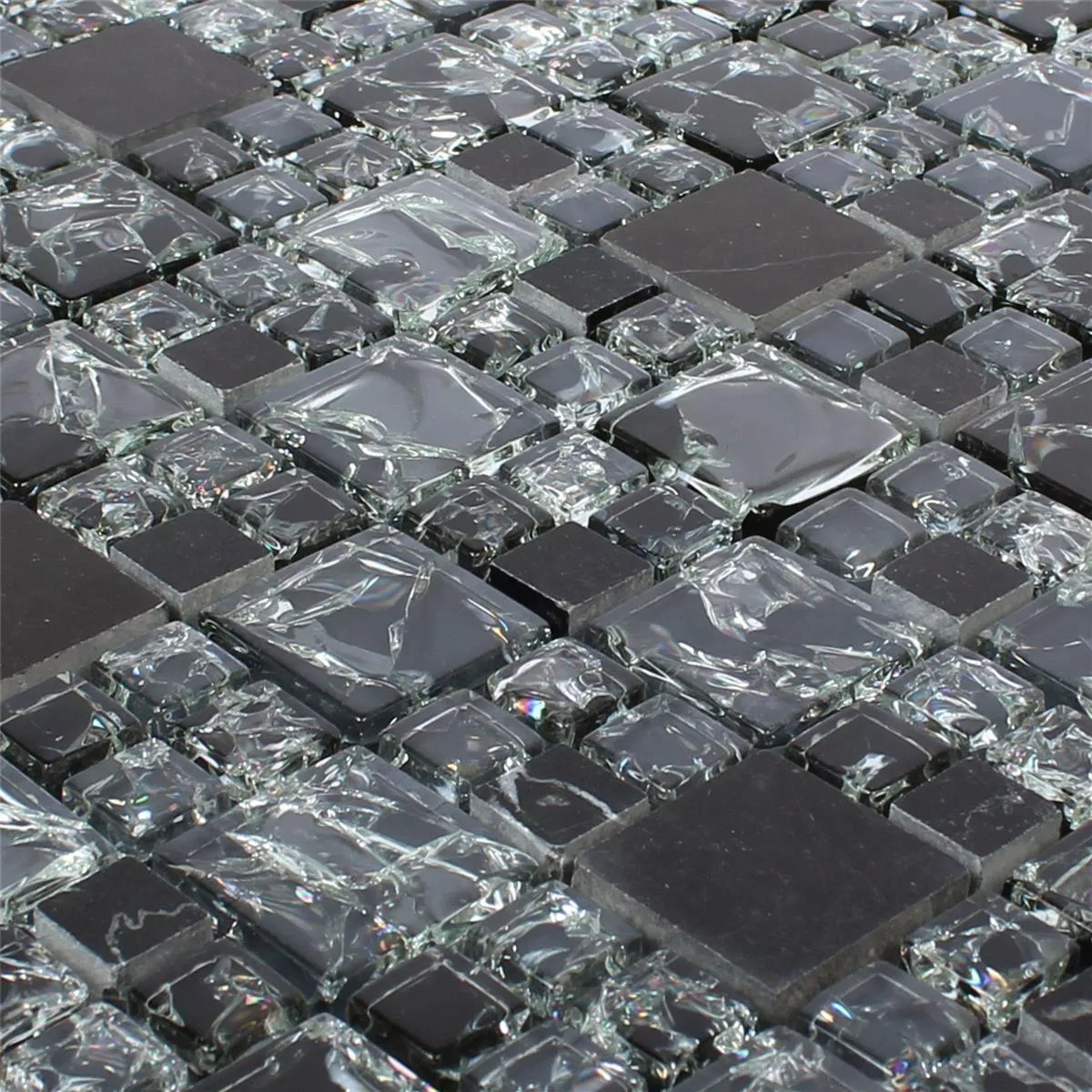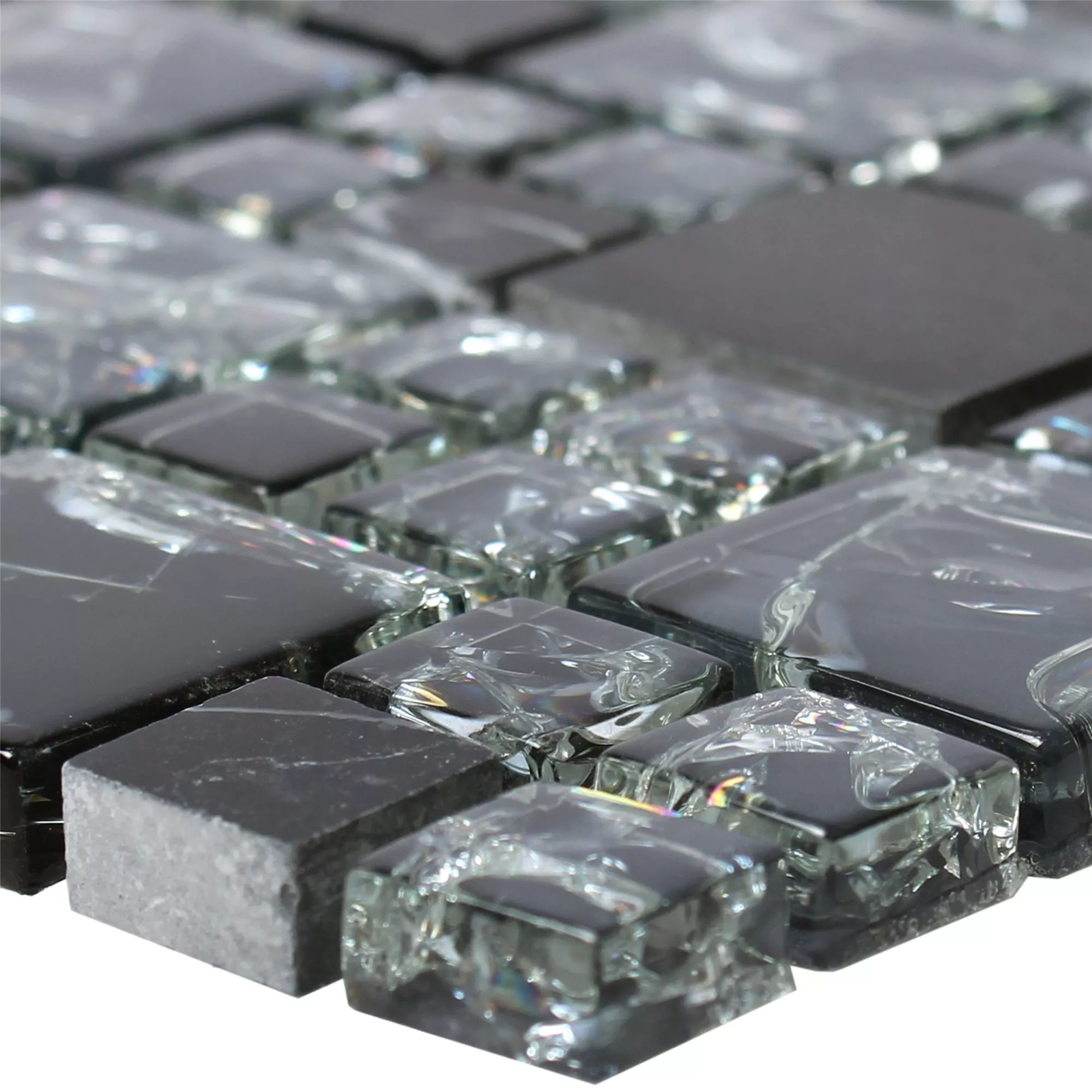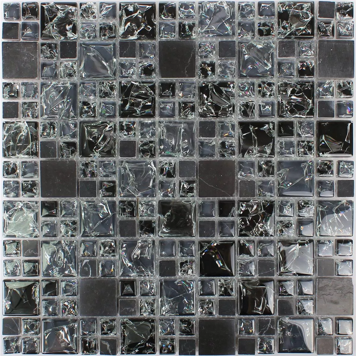 Mosaic Tiles Glass Natural Stone Malawi Black 2 Mix
