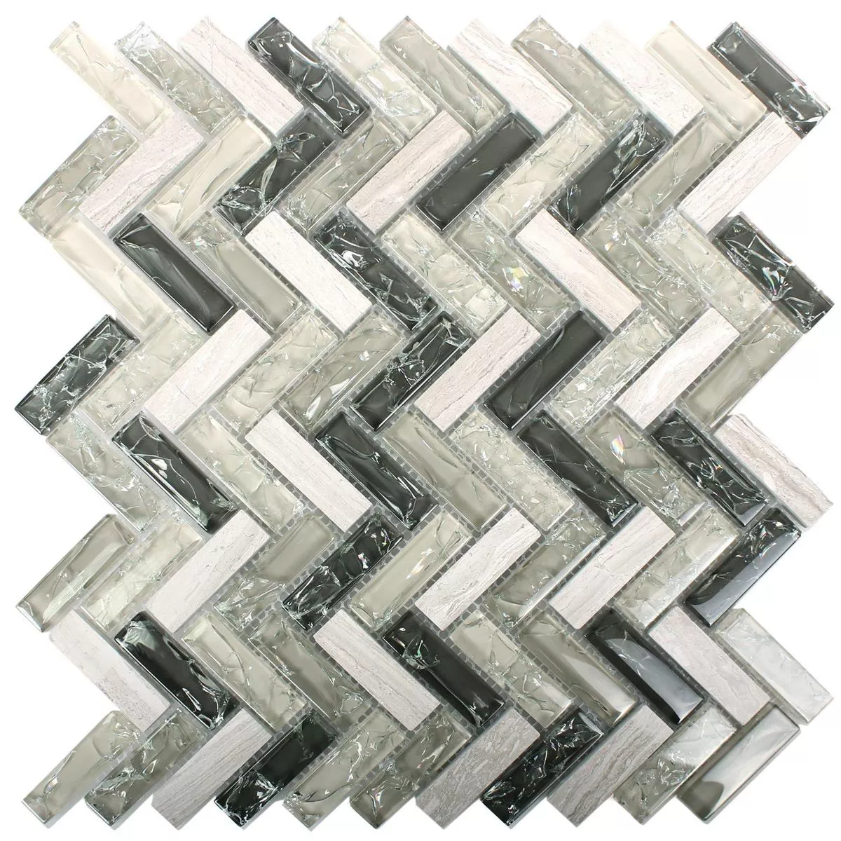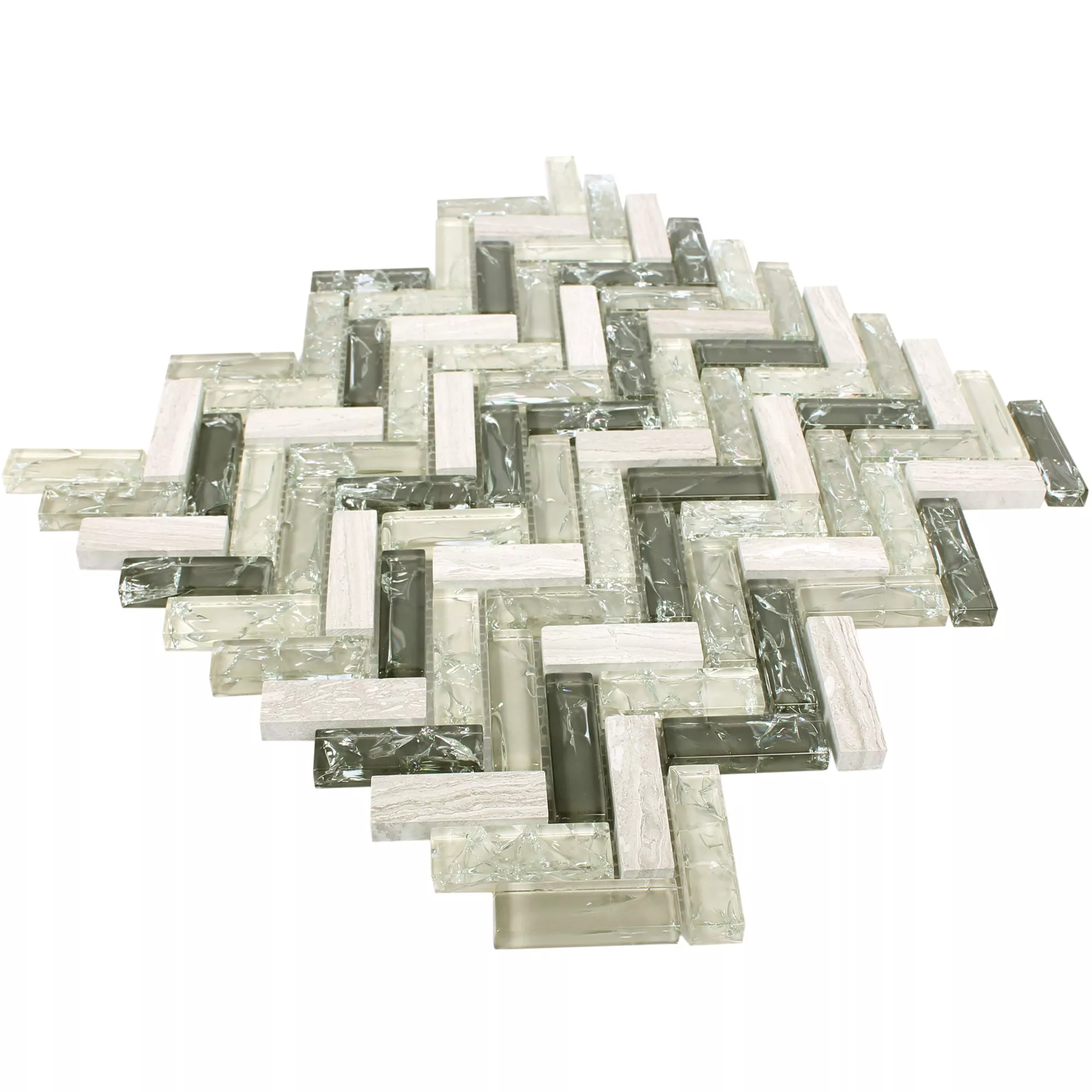 Mosaic Tiles Glass Natural Stone Malawi Grey Green Fish Bone