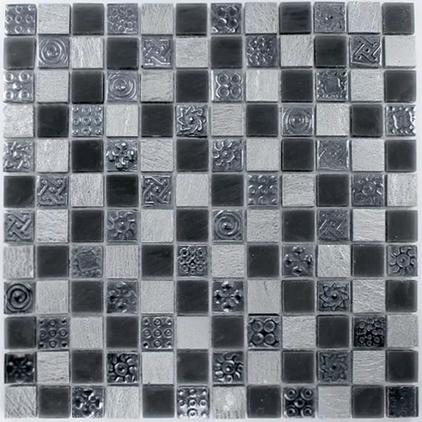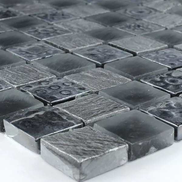 The Los Angeles Glass Natural Stone Mix mosaic tiles in Orlando Black are robust and very flexible to lay. The material mix and the corresponding mixture of the mosaics enlivens the surface as wall tiles. This is an idea for processing these mosaics bound on a mesh surface. Laying is quick with the dimensions offered and the materials resin, glass, limestone and marble result in a very classy and elegant surface. They are natural stone tiles because these materials are natural and these natural stone tiles are a trend.