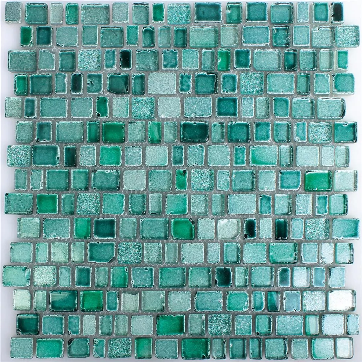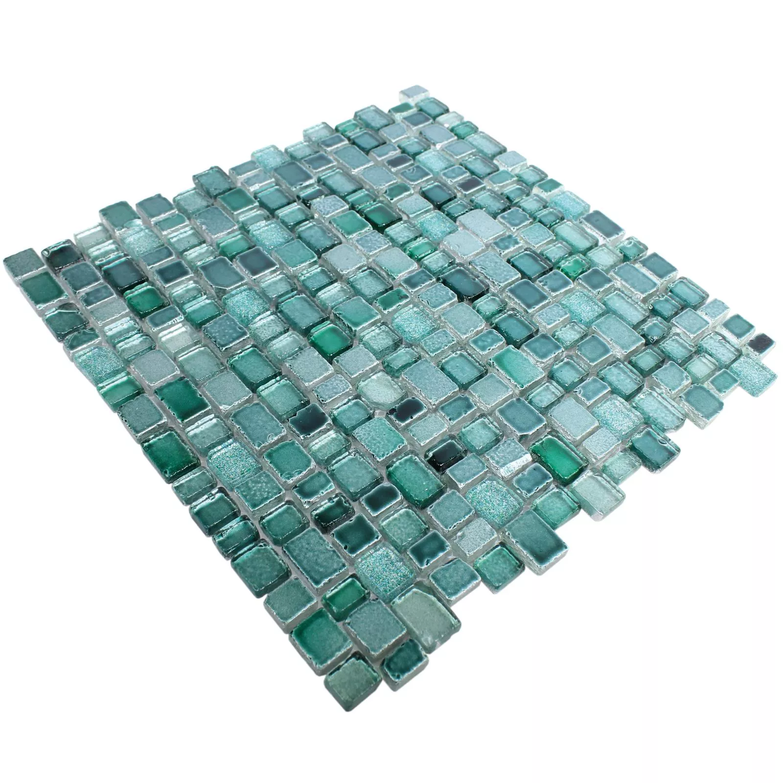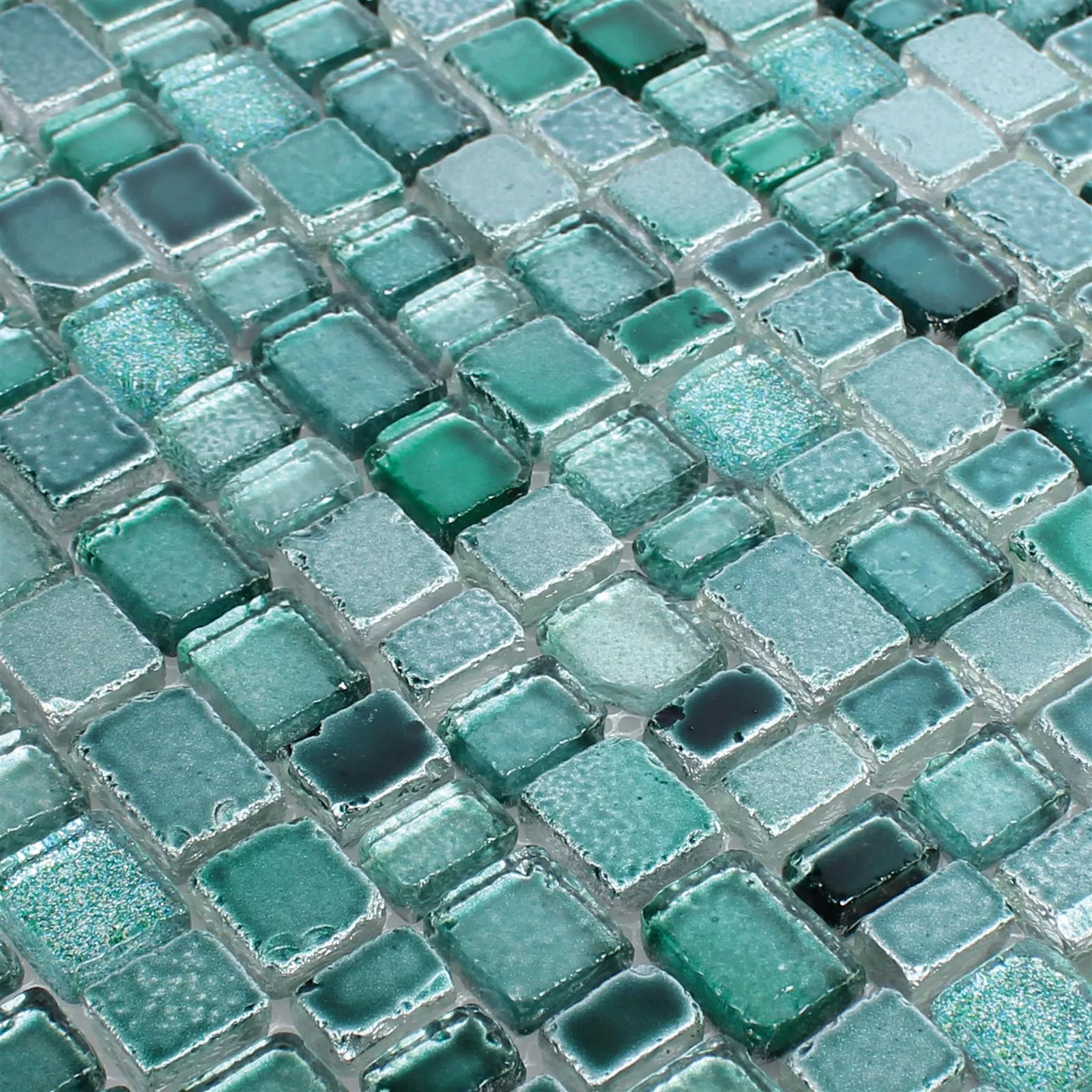 These trendy green wall tiles from the Glas Roxy series are a good choice for all lovers of small mosaic tiles. The beautiful glass wall tiles are available in two color shades. Sometimes the base color of the glass mosaic is black and sometimes it is brown. A glass mosaic on the wall is always easy to maintain, which is why these Glas Roxy mosaic tiles look just like the first day they were laid, even after many years. These wall tiles are the perfect alternative to plain wallpaper and wood paneling. Thanks to the many small stones made of glass, the surface of which shines subtly, there are always new, exciting looks on the wall, depending on the time of day and the incidence of light.