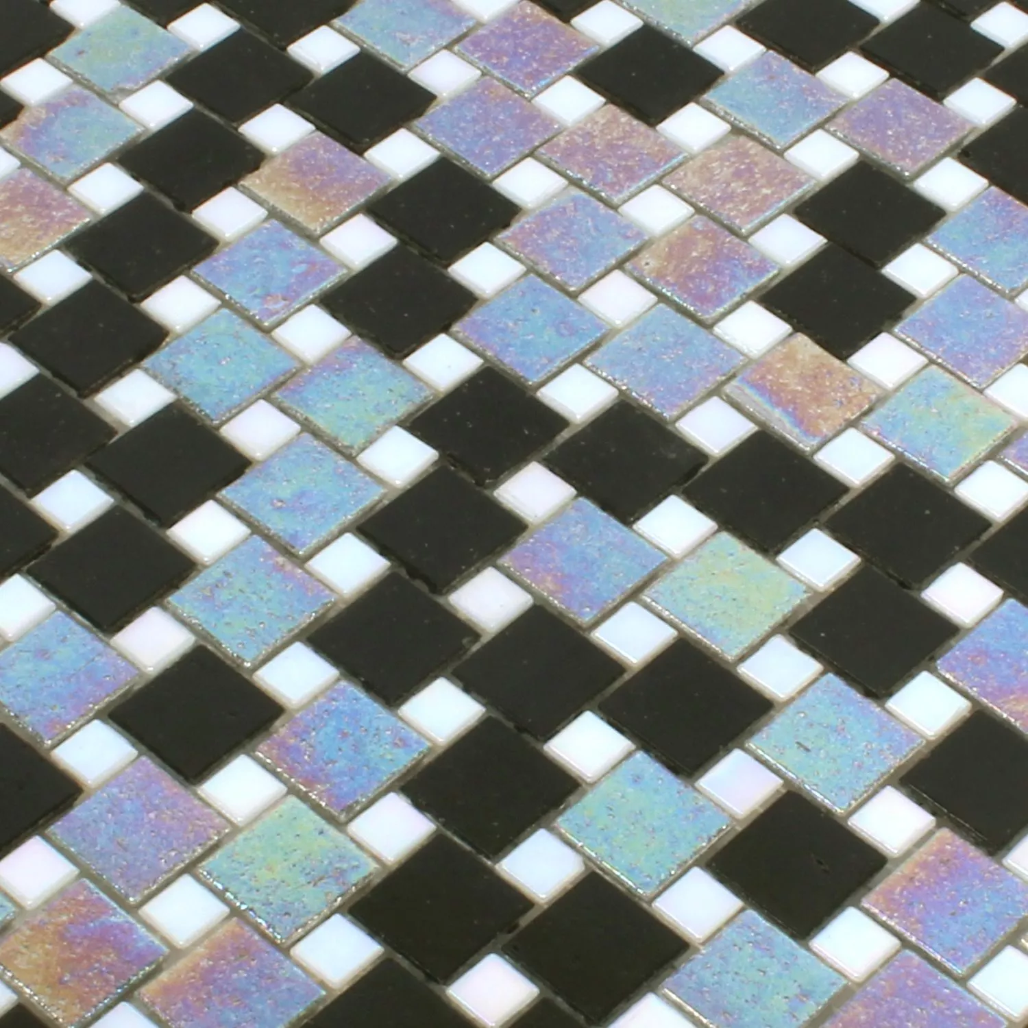 The interplay of the different surfaces creates exciting moments when the light falls, so that the glass mosaic effect is particularly effective in artificial light. With spotlights and multi-armed ceiling lights, these mosaic tiles look like glittering water in many shades of colour.
