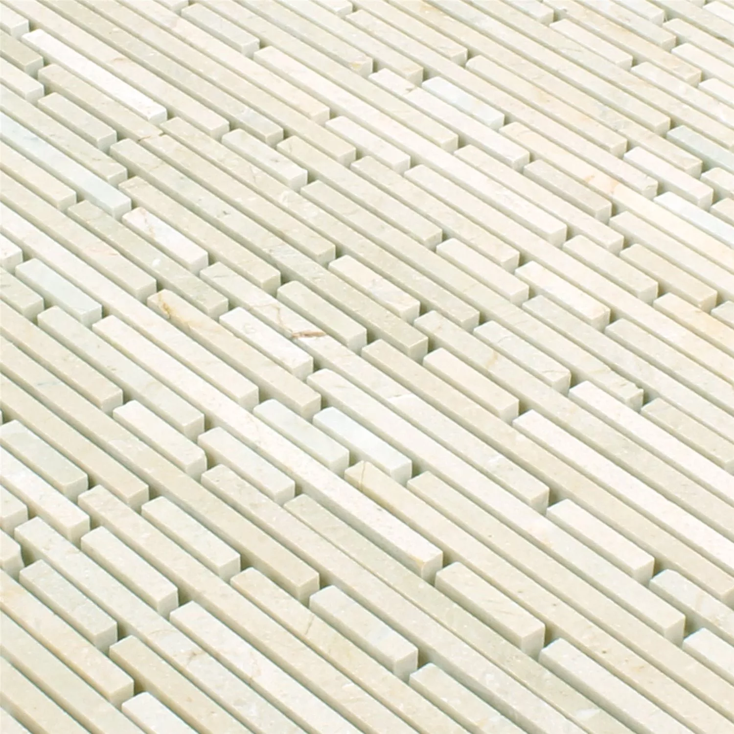 Made from the robust marble material, these products are just as suitable for indoor use as they are for outdoor use. The narrow cut pieces of the Superslim Biancone mosaic tile impress with their natural coloring and unevenness. Laying these tiles is particularly easy. They are delivered directly pre-cut. Due to the narrow pieces, they also fit into narrower spaces. They are best laid right next to each other. As a wall covering, the joint does not even have to be closed here.